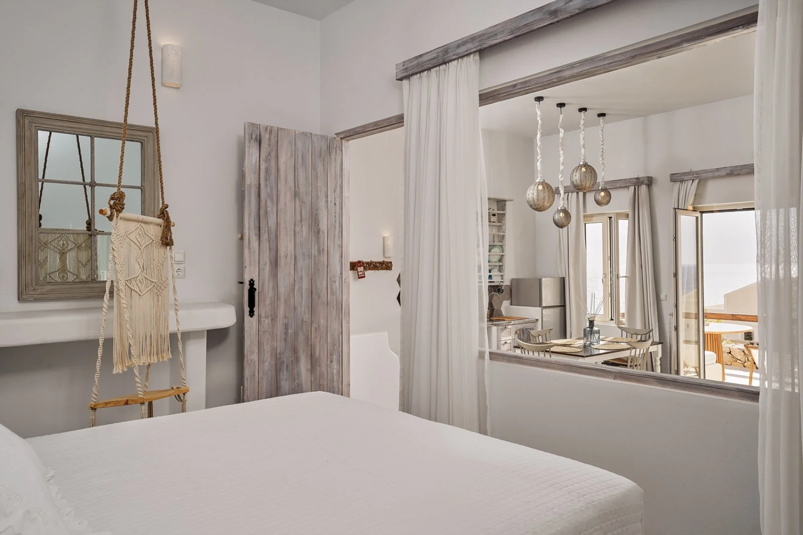 Solo 21 gli appartamenti, comodi e spaziosi, suddivisi in open plan suite con ambiente unico che ospitano fino a 3 persone, e private bedroom suite, con camera da letto e soggiorno separati, che ospitano fino a 5 persone. Entrambe sono arredate con gusto, ciascuna con un design differente che le contraddistingue e le rende uniche. Tutte le suite dispongono di asciugacapelli, ciabattine, aria condizionata con controllo individuale, connessione Wi-Fi, TV satellitare, cassetta di sicurezza, asse e ferro da stiro, terrazza vista mare e angolo kitchenette attrezzato con piano cottura, frigorifero, tostapane, spremiagrumi, macchina per il caffè. Pulizia 6 volte a settimana e cambio biancheria 3 volte a settimana, tutto rigorosamente con prodotti bio.