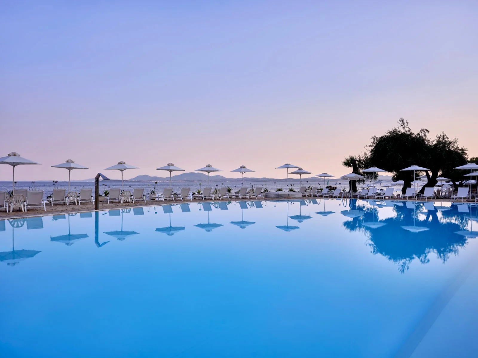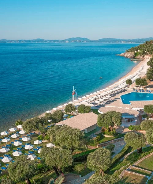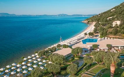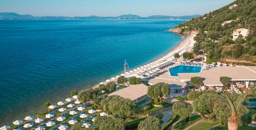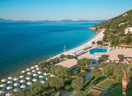 In posizione suggestiva, a circa 2 km dal paesino di Nissaki e 23 km dall’aeroporto e da Corfù città. La struttura è costruita sul pendio e digrada dolcemente verso il mare, in una baia tra le più belle di Corfù, con la sua spiaggia di ciottoli e l’acqua del mare che crea sfumature multicolore. Dispone di 2 piscine, di cui una vicina alla spiaggia e una relax in posizione panoramica. Uso gratuito di lettini, ombrelloni e teli mare solo in piscina.