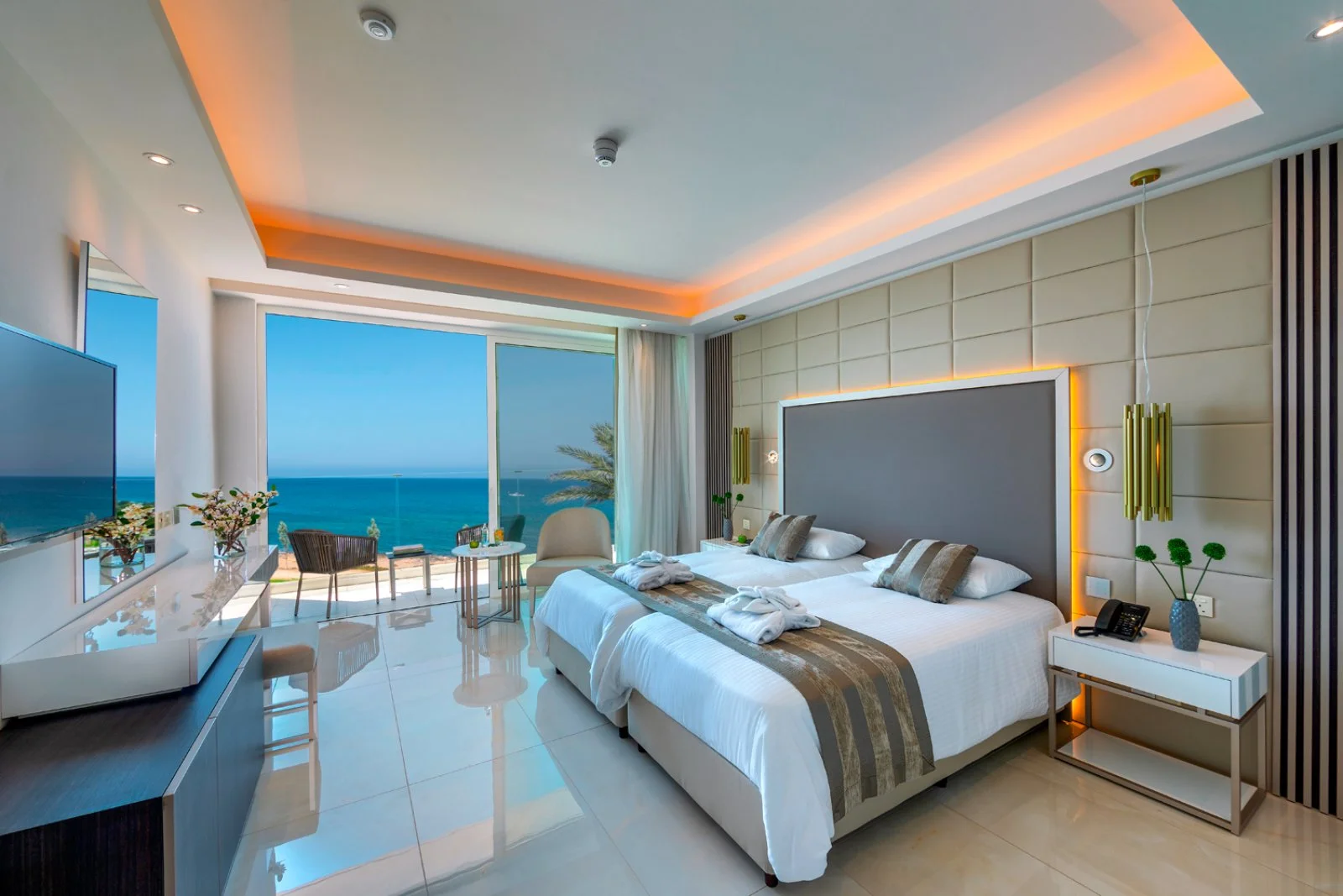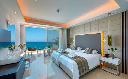 294 sistemazioni dal design moderno e con elementi decorativi classici, sono suddivise in diverse tipologie tra superior, family e suite. Le family sono spaziose e possono ospitare fino a un massimo di 2 adulti e 2 bambini, per chi desidera una sistemazione più ricercata le suite fronte mare sono l’ideale, molto spaziose circa 67 m2 e con due ambienti parzialmente separati. Tutte sono dotate di aria condizionata, asciugacapelli, Wi-Fi, cassetta di sicurezza, minifrigo, set per la preparazione del tè e/o del caffè, TV satellitare.