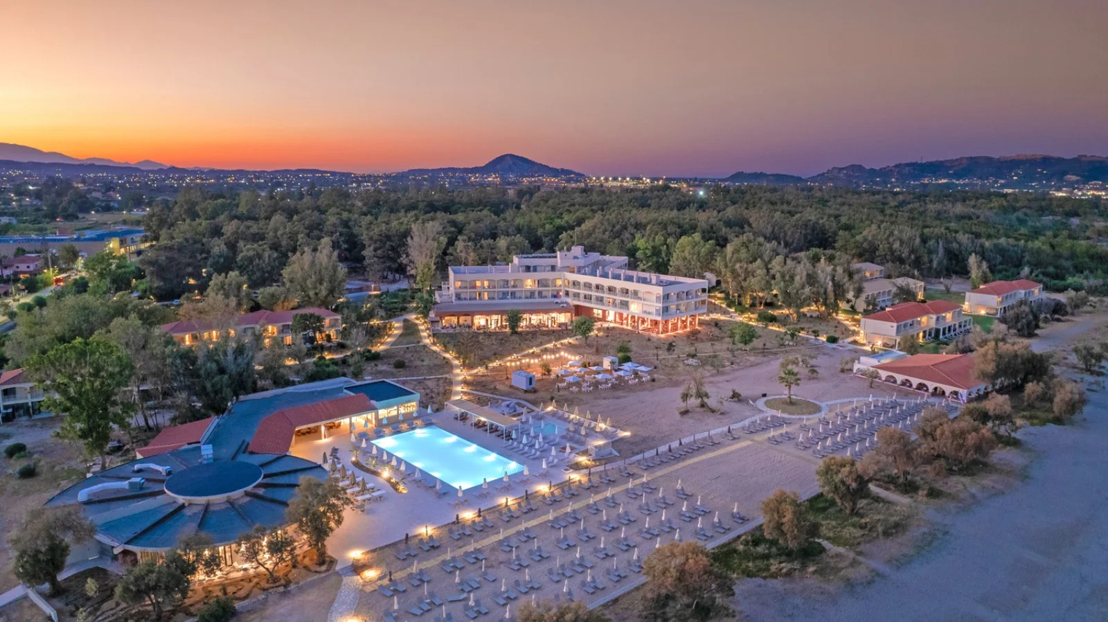 Sofisticato e rilassante resort, con un corpo centrale e un edificio annesso immersi nel verde direttamente sulla spiaggia sabbiosa di Laganas, la più lunga dell’isola, a soli 10 minuti a piedi dall’omonima vivace cittadina, 5 km dall'aeroporto e 8 km da Zante città. Dispone di 2 piscine di cui una per bambini. Lettini, ombrelloni e teli mare gratuiti sia in spiaggia che presso le piscine.