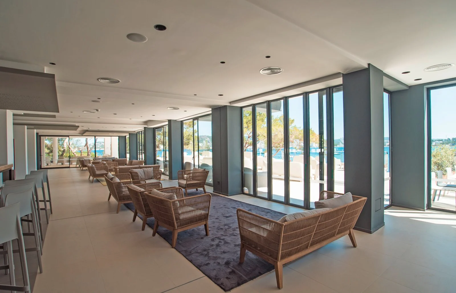 Il complesso, in stile moderno e minimalista, offre un ambiente elegante e un'atmosfera allo stesso tempo rilassata. Sorge nella baia di San Antonio a pochi chilometri dall’omonimo centro, rinomato per essere uno dei luoghi più animati dell’isola grazie alla presenza di numerosi negozi, bar, ristoranti, discoteche e famosi locali dai quali, al calar della sera, si possono ammirare splendidi tramonti.