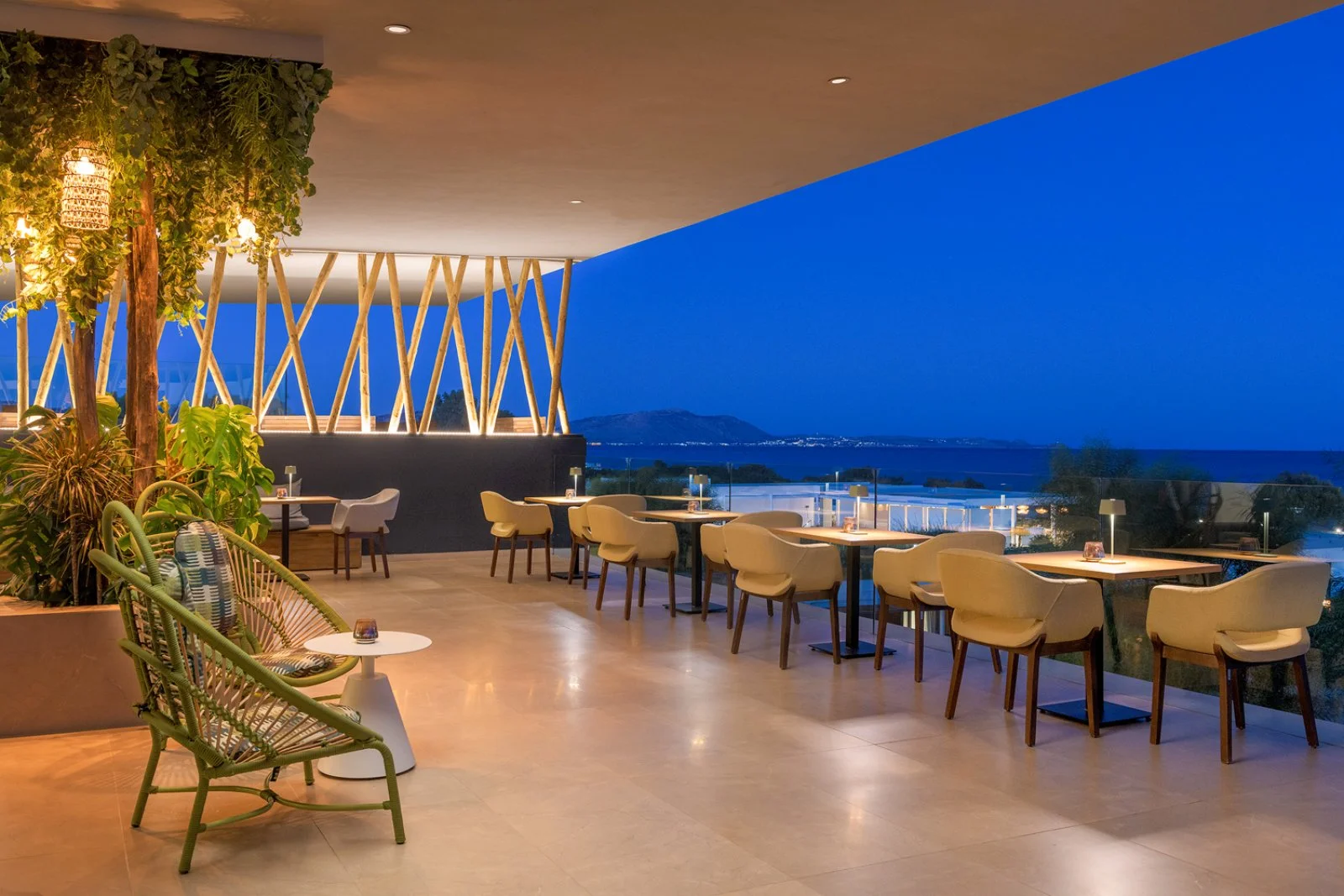 Presso l’elegante ristorante principale è servita a buffet la prima colazione inclusa nel trattamento di pernottamento e prima colazione. Inoltre, a pagamento, pranzo e cena a buffet presso il ristorante principale, 2 snack restaurant, Alati Beach Deli in spiaggia e Wet Casual pool, ideali per pranzi leggeri o spuntini durante il giorno, e 5 ristoranti à la carte, Ble aperto per pranzo, Ten2One con specialità mediterranee per pranzo e cena, Ouzo con cucina greca, Edesma Fine Dining e Steak House aperti per cena. A completare l’offerta, vari bar, in spiaggia e presso le piscine e la lobby. È possibile prenotare anche il trattamento mezza pensione o all inclusive: maggiori dettagli ai rispettivi paragrafi dedicati.