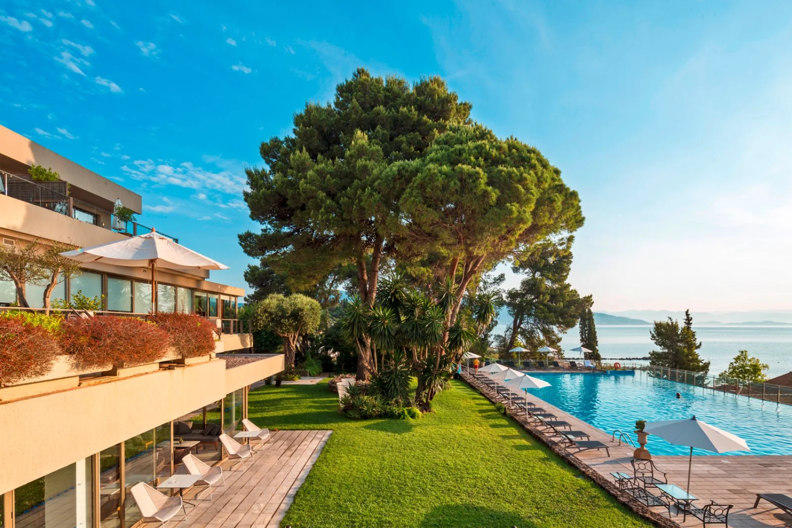 Wi-Fi in tutto il resort. Servizio navetta per Corfù città una volta al giorno. Palestra, campo da tennis (illuminazione a pagamento), beach volley, ping-pong, sauna, hammam e idromassaggio. Miniclub 4-12 anni a orari fissi con area giochi, sessioni di yoga, pilates, stretching, lezioni di cucina e live music per gli adulti a cura dello staff internazionale dell’hotel. Inoltre, a pagamento: SUP, pedalò e altri sport nautici, noleggio biciclette; rinomato e attrezzato centro SPA & Wellness Euphoria (over 16 anni) con massaggi, aromaterapia, riflessologia e trattamenti estetici; boutique e gioielleria. Nelle vicinanze, equitazione a 10 km e campo da golf a 18 buche a 13 km.
