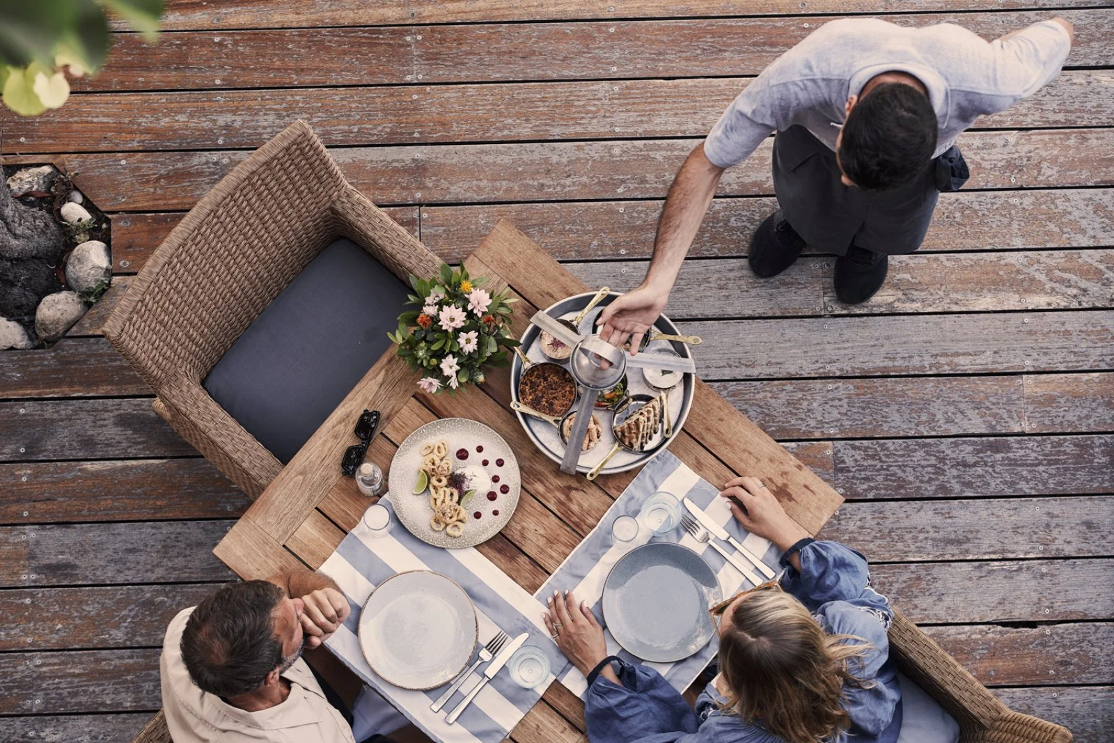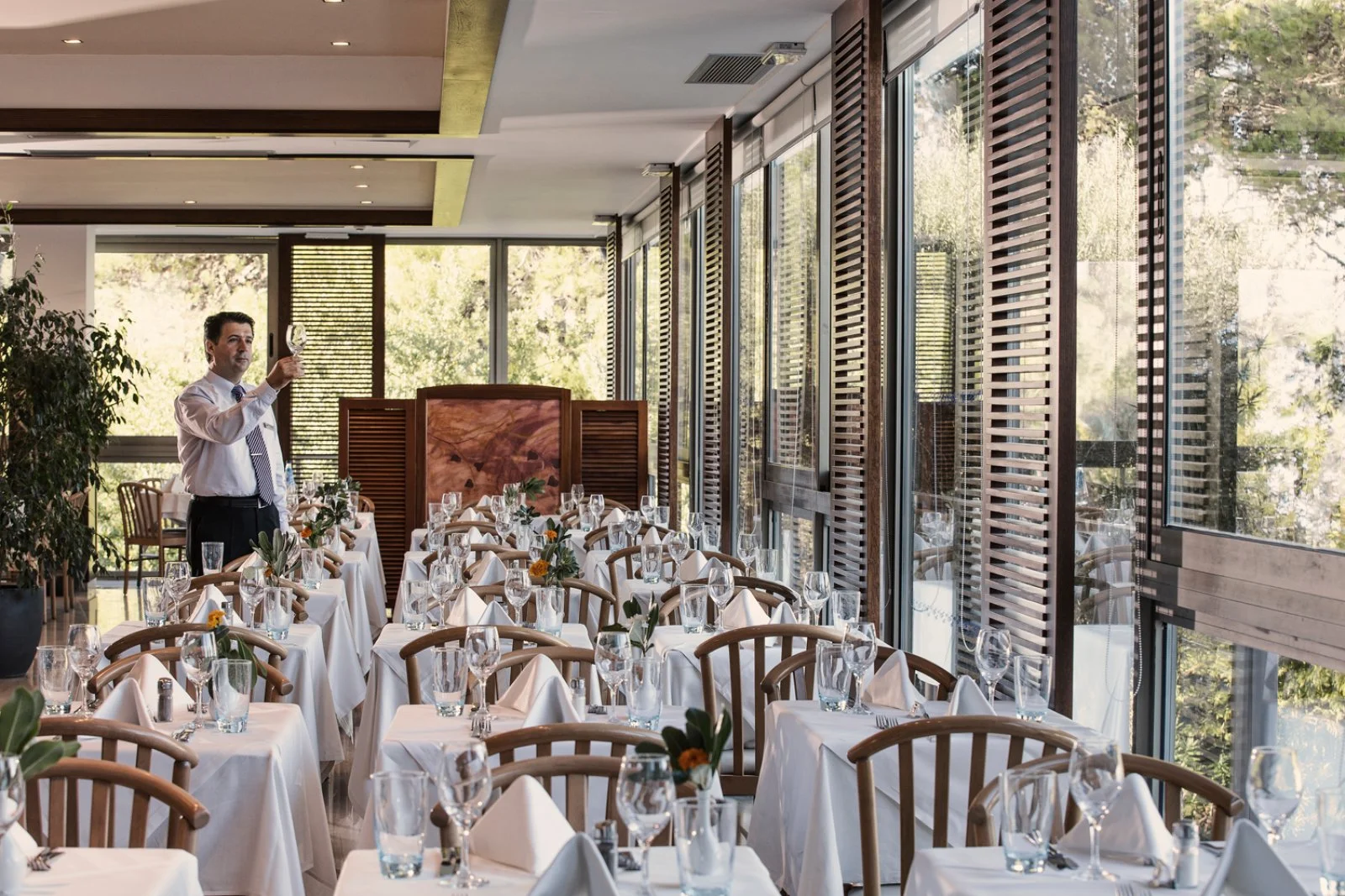 Per la prima colazione gli ospiti possono scegliere tra due ristoranti a buffet: il ristorante principale Horizon e Marina Food Court in spiaggia, che propone la tipica prima colazione greca. Gli ospiti in trattamento di mezza pensione, inoltre, potranno optare tra la cena a buffet presso il ristorante principale o il pranzo a buffet presso Marina Food Court. Per gli ospiti in trattamento di pensione completa, invece, il pranzo è previsto presso la Marina Food Court e la cena presso il ristorante principale, entrambi con servizio a buffet. A pagamento e su prenotazione, 2 ristoranti à la carte: Parea by the beach e Asterias Fine Dining. Completano la proposta 2 bar, uno presso la lobby e uno in spiaggia.