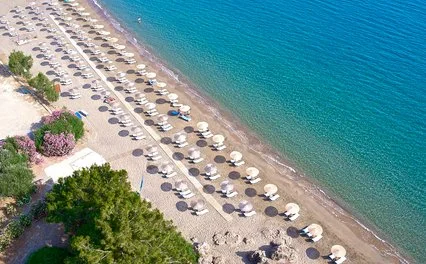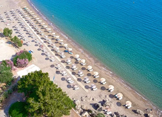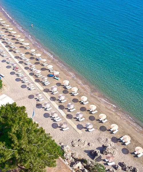 In posizione dominante sulla baia di Vlicha, a circa 2,5 km dall’affascinante villaggio di Lindos e 50 km da Rodi città e dall’aeroporto. Il resort è costruito su più livelli digradanti lungo il pendio verso la spiaggia di sabbia e ciottoli, una tra le più belle di Rodi, raggiungibile grazie a una serie di ascensori e scale o una caratteristica funicolare. Dispone di 3 piscine esterne immerse in uno scenario naturale lussureggiante di cui una, la principale, con una bellissima area solarium panoramica rinnovata di recente, una vicina alla spiaggia e una per bambini. Uso di lettini, ombrelloni e teli mare gratuito sia in piscina che in spiaggia.
