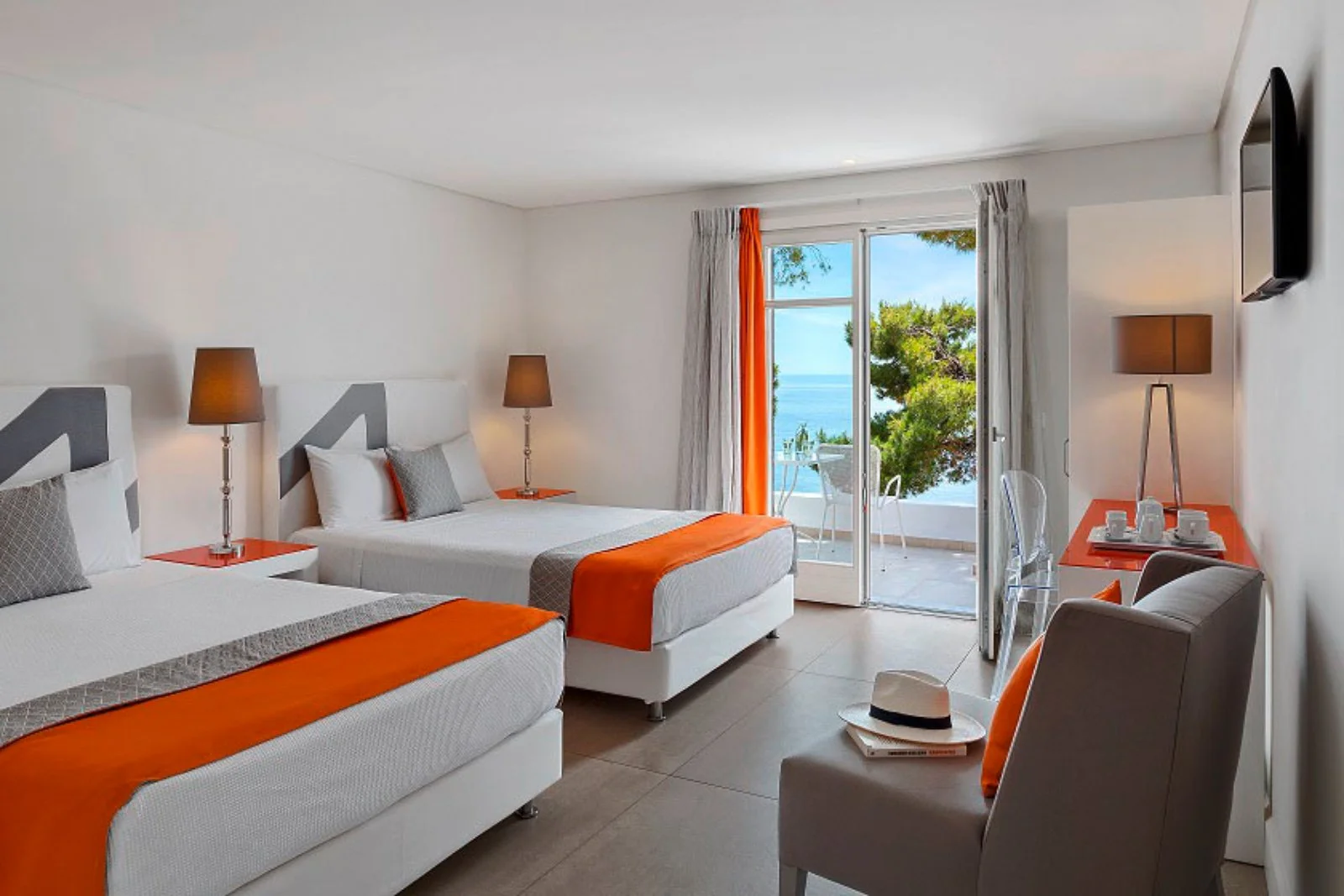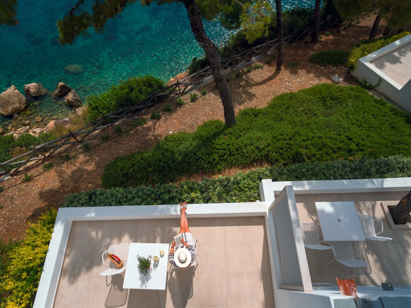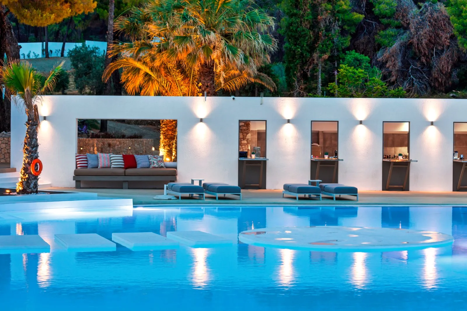 Ubicato all’interno del parco marino protetto di Alonissos, uno tra i più grandi in Europa, a circa 1 ora e mezza di traghetto dal porto di Skiathos (per maggiori dettagli sui trasferimenti consulta il nostro sito). È adagiato su di una verde e piccola penisola privata, circondata da acque turchesi, dove si affacciano le 2 spiagge di ciottoli, una proprio di fronte alla nuova piscina (con acqua di mare), mentre l’altra, più piccola, in posizione tranquilla. Lettini, ombrelloni e teli mare sono a disposizione degli ospiti gratuitamente sia in spiaggia che in piscina.