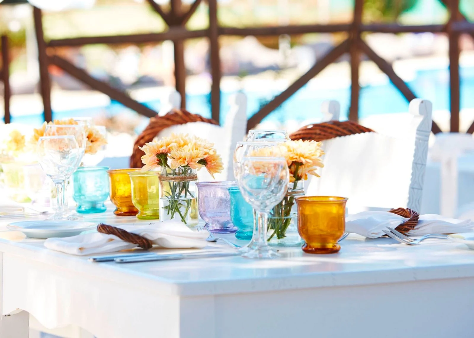 Ampio ristorante principale che offre un ottimo buffet per la prima colazione, il pranzo e la cena. Inoltre, è disponibile il ristorante à la carte Achinos a pagamento (maggiori dettagli al paragrafo Formula all inclusive). Per gli spuntini fuori pasto o bevande dissetanti sono presenti due bar di cui uno presso la piscina.