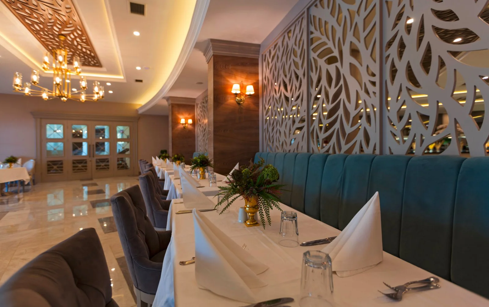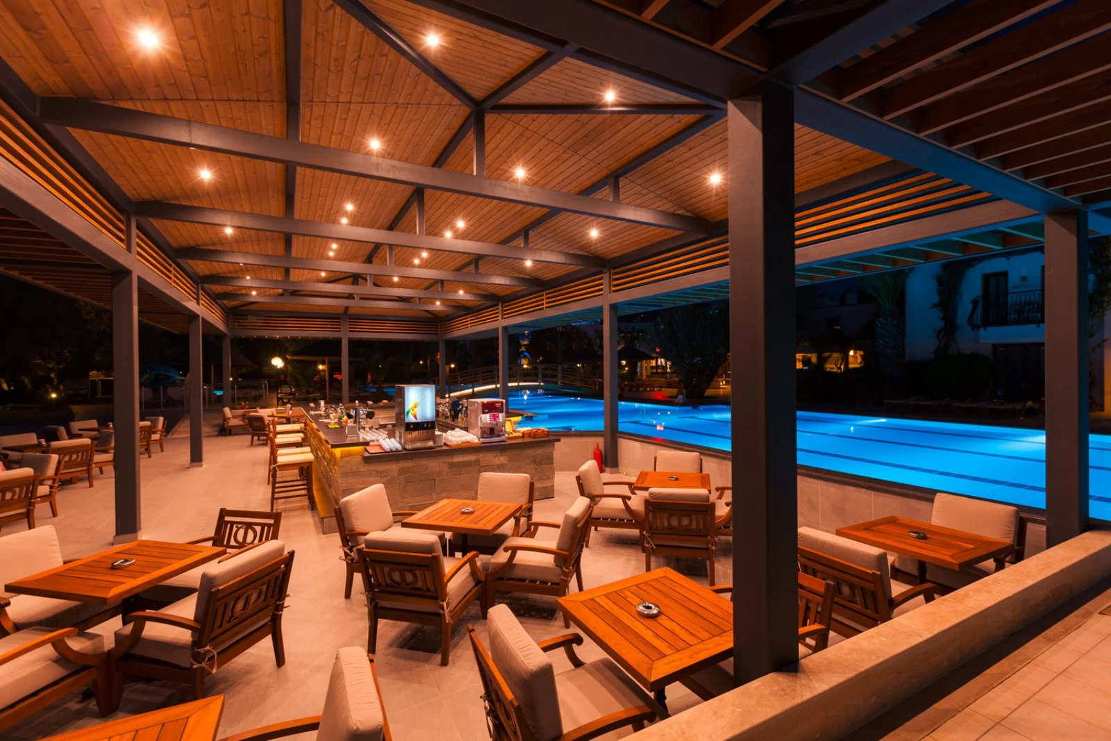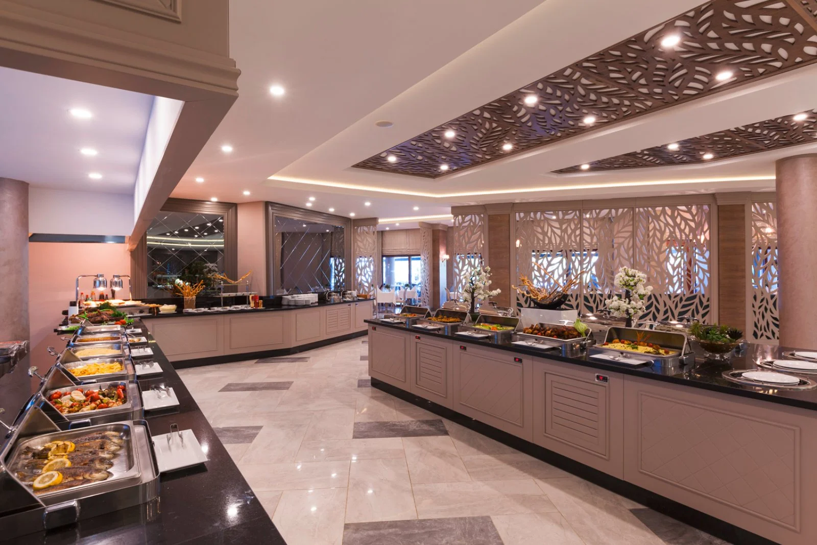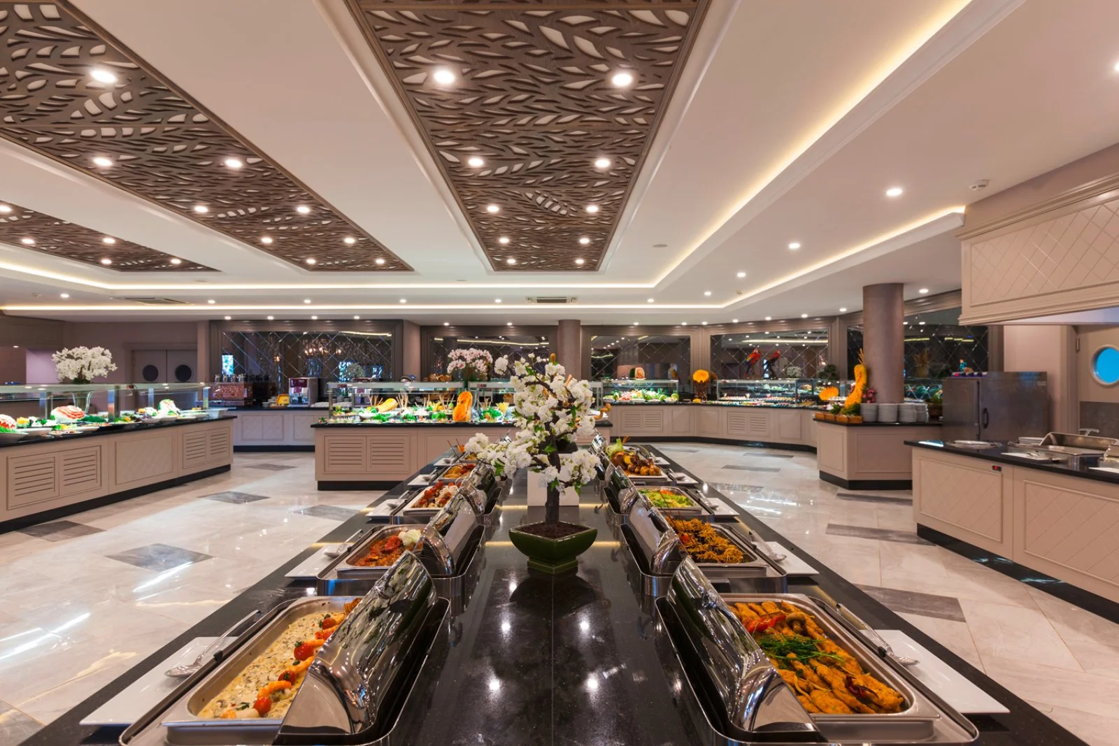 La formula ultra all inclusive del resort include un’ottima offerta gastronomica sia per varietà che per qualità. Il moderno ed elegante ristorante principale Karia, con un’ampia terrazza esterna, serve prima colazione, pranzo e cena con servizio a buffet e show cooking. Lo snack/restaurant è perfetto per pranzi leggeri o spuntini durante il giorno. I bar sono 5 di cui uno h24. Inoltre, 2 ristoranti à la carte, Begonvil con specialità turche, aperto per prima colazione e cena, e Terrace con specialità di pesce aperto per cena (maggiori dettagli alla Formula all inclusive).