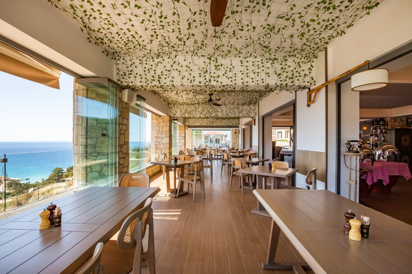 L’ambiente all’aperto del ristorante, con la grande terrazza in pietra affacciata sul mare, accoglie gli ospiti per la prima colazione servita a buffet (espresso e cappuccino a pagamento). Un delizioso risveglio dei sensi con il sapore di prodotti autentici e genuini. Inoltre, a pagamento, un bar e un ristorante-pizzeria à la carte, aperto tutti i giorni per gustosi pranzi con vista o romantiche cene sotto le stelle delle limpide serate estive.