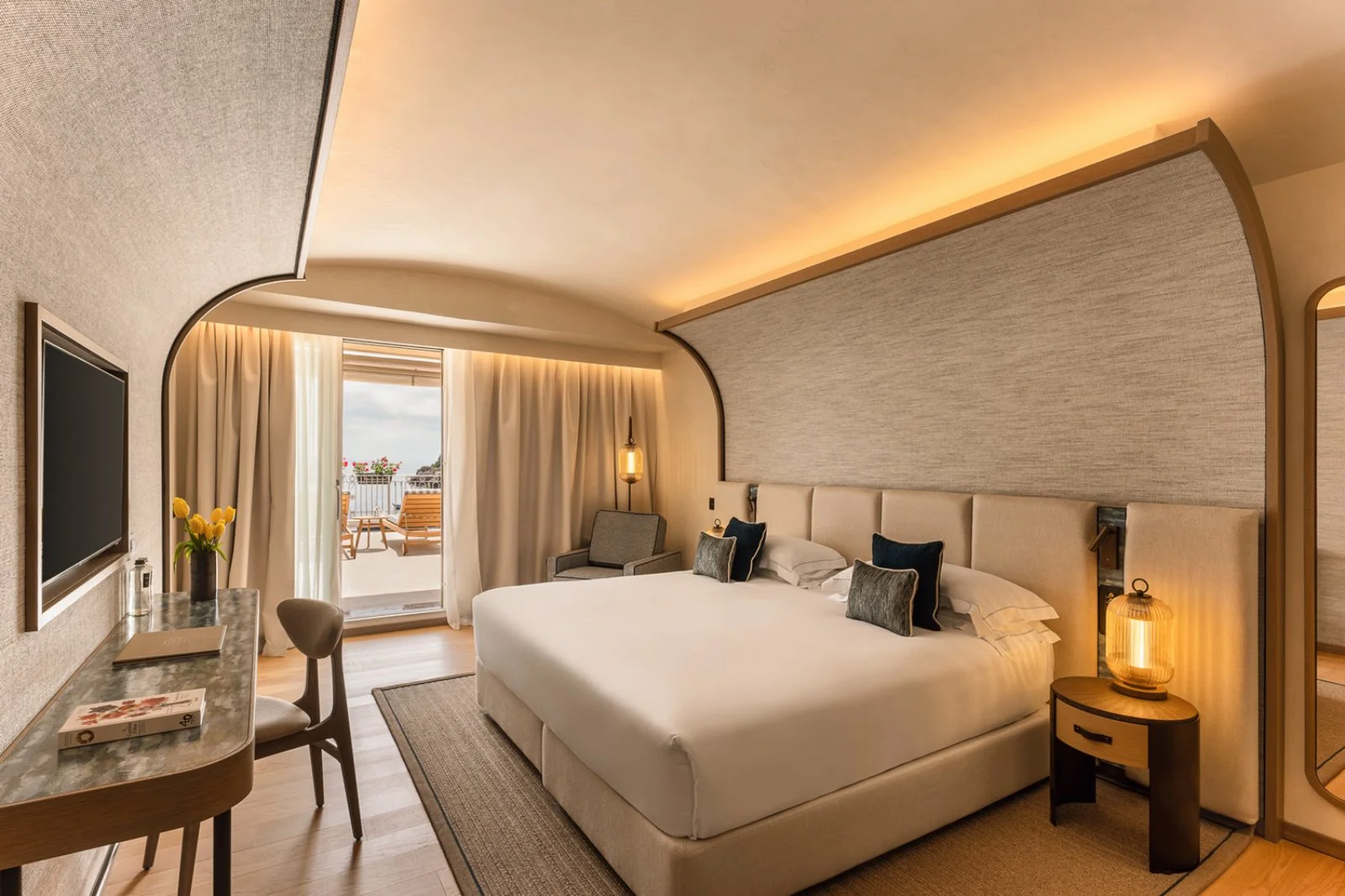 In uno dei tratti più incantevoli e incontaminati della costa siciliana, nella baia di Taormina, il Mazzarò Sea Palace è un cinque stelle lusso posto direttamente sul mare. I colori, i profumi e il sole del Mediterraneo entrano dalle terrazze private nelle 70 camere e suite, arredate in stile contemporaneo e tutte con vista mare.