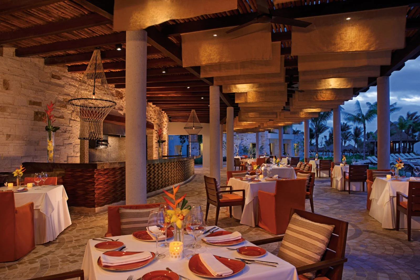 Ricercata è la vasta gamma di proposte gastronomiche. Si potrà scegliere tra nove ristoranti à la carte, tra cui sei gourmet, una caffetteria ed un grill, tutti senza prenotazione. L’avventura culinaria offre specialità della cucina italiana, messicana, di pesce, fusion e francese. In fine sette i bar dove gustare cocktail esotici e bevande alcoliche premium brand. Presso il Coco Cafè potrete guastare spuntini fino a tarda notte. In alcuni ristoranti è richiesto un abbigliamento casual elegante, con pantalone lungo per uomo. Con un supplemento è possibile prenotare, tramite il concierge, una cena privata romantica per la vostra luna di miele o anniversario o semplicemente per una cena speciale.
