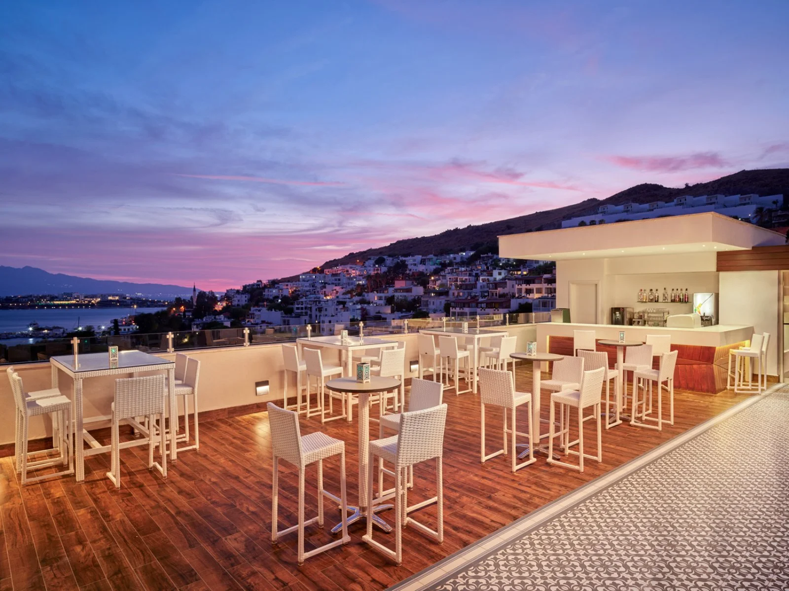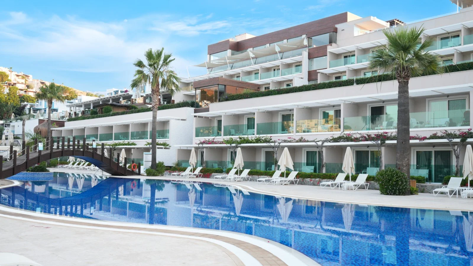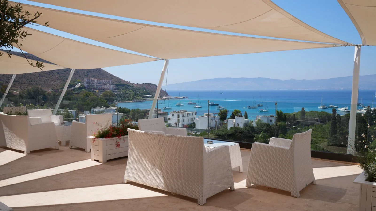 Situato a circa 8 km da Turgutreis, dista 23 km da Bodrum città e 60 km dall’aeroporto. La zona residenziale di Akyarlar, con negozietti e ristorantini, dista circa 200 m. L’edificio principale presenta un’architettura moderna: distribuito su più livelli è intervallato da ampie terrazze con giardini curati. Nella parte alta, vicino alla reception, una zona con edifici bianchi e azzurri, in stile bungalow, che ricordano l’architettura egea.