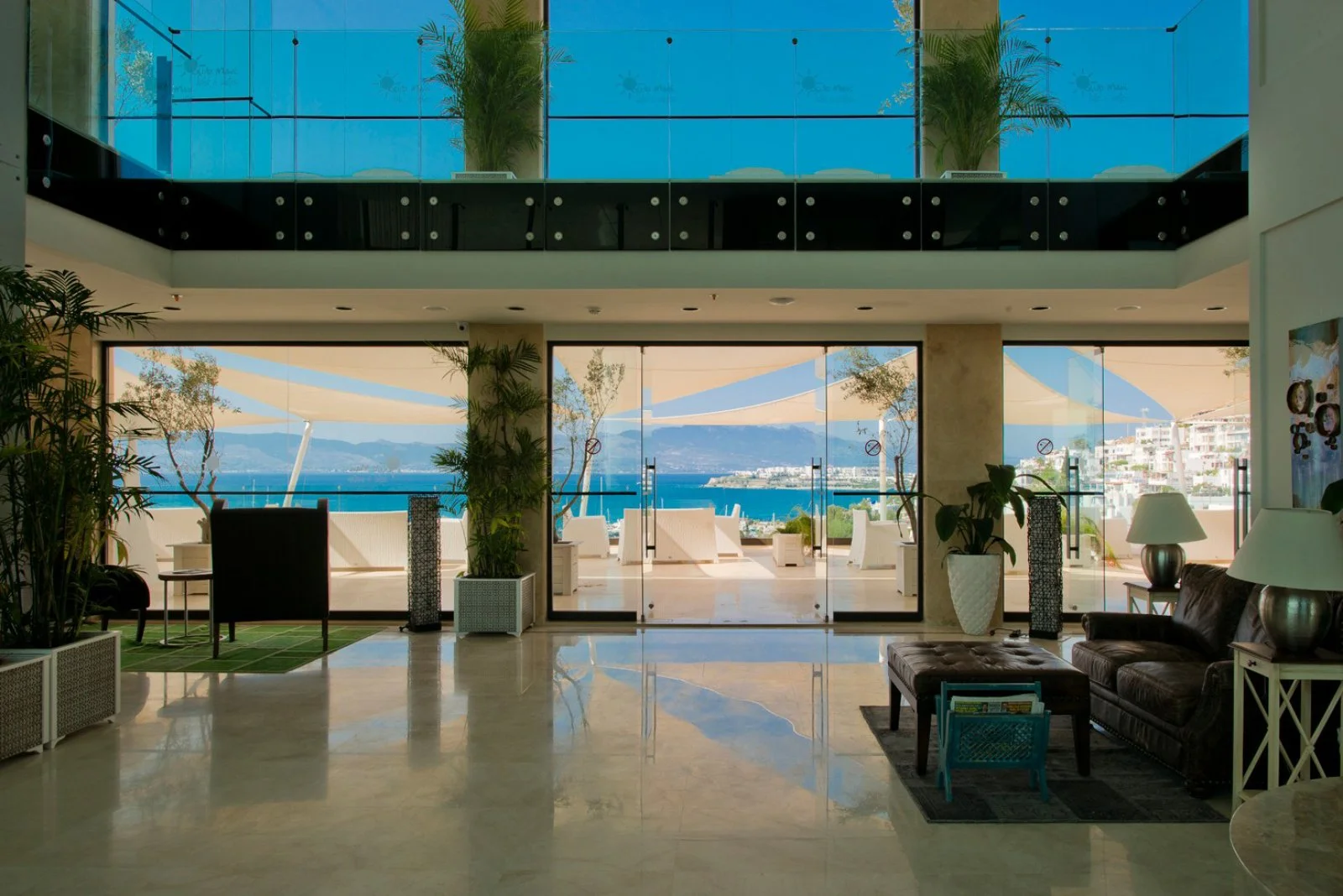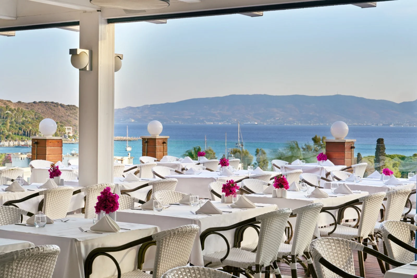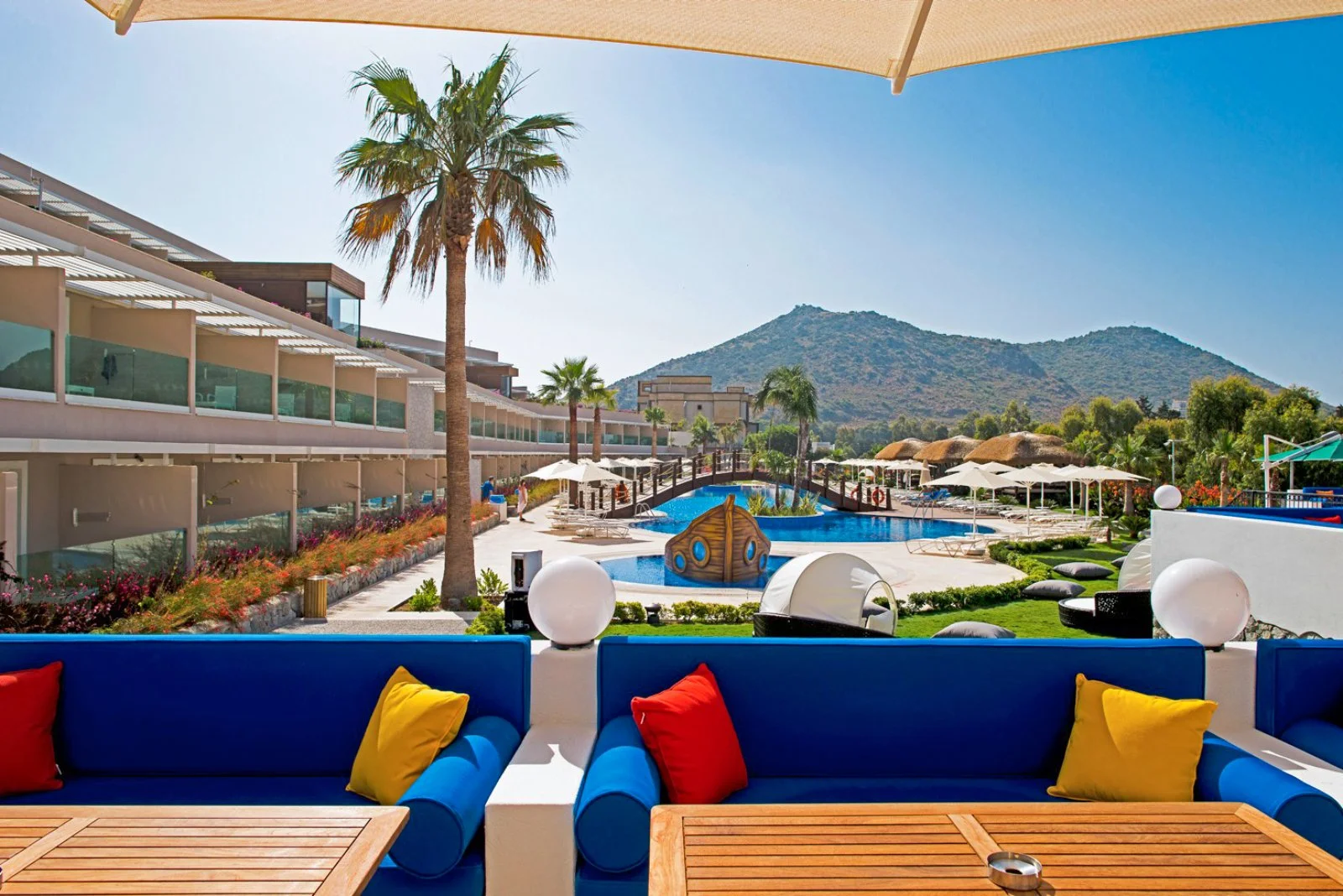 Situato a circa 8 km da Turgutreis, dista 23 km da Bodrum città e 60 km dall’aeroporto. La zona residenziale di Akyarlar, con negozietti e ristorantini, dista circa 200 m. L’edificio principale presenta un’architettura moderna: distribuito su più livelli è intervallato da ampie terrazze con giardini curati. Nella parte alta, vicino alla reception, una zona con edifici bianchi e azzurri, in stile bungalow, che ricordano l’architettura egea.