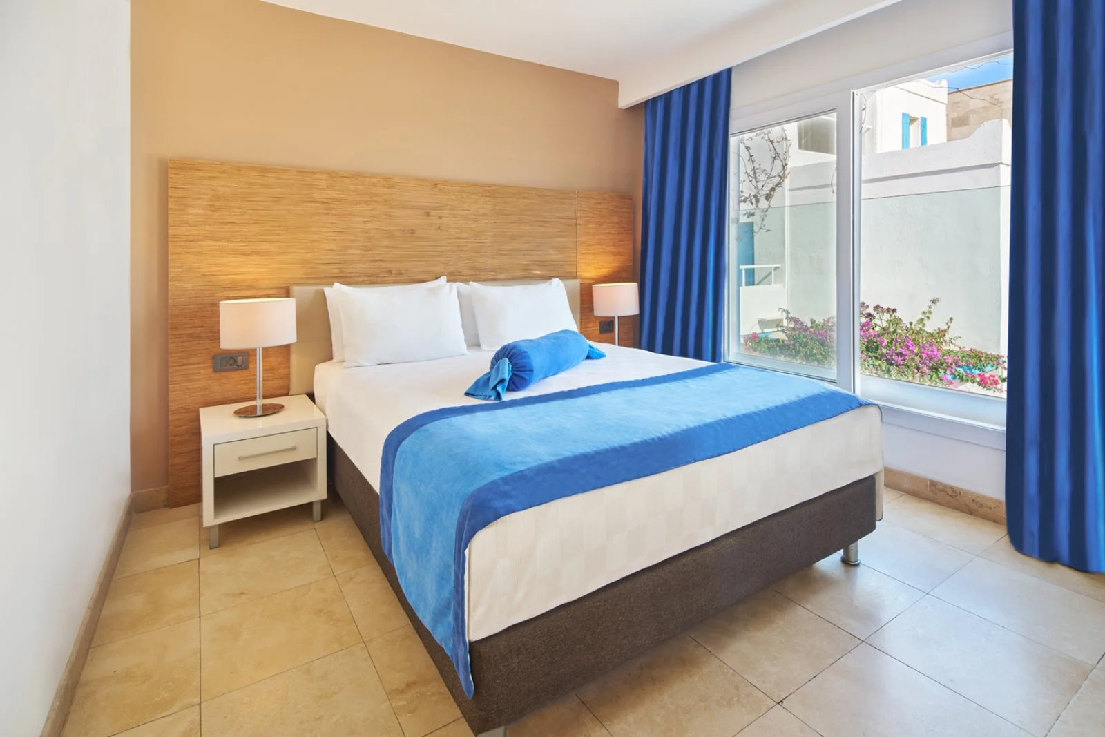 179, accoglienti e funzionali, tutte dotate di servizi privati, asciugacapelli, telefono, TV satellitare, aria condizionata con controllo individuale, minibar rifornito giornalmente con 2 bottiglie di acqua, set per tè e caffè, accesso internet Wi-Fi, cassetta di sicurezza, balcone o terrazza. Le doppie standard land view e vista mare sono situate nell’edificio principale mentre, le più spaziose, club land view e vista mare sono situate nella zona vicino alla reception, negli edifici più caratteristici. Ospitano tutte fino a 3 adulti.
