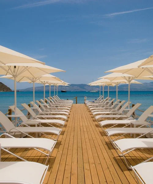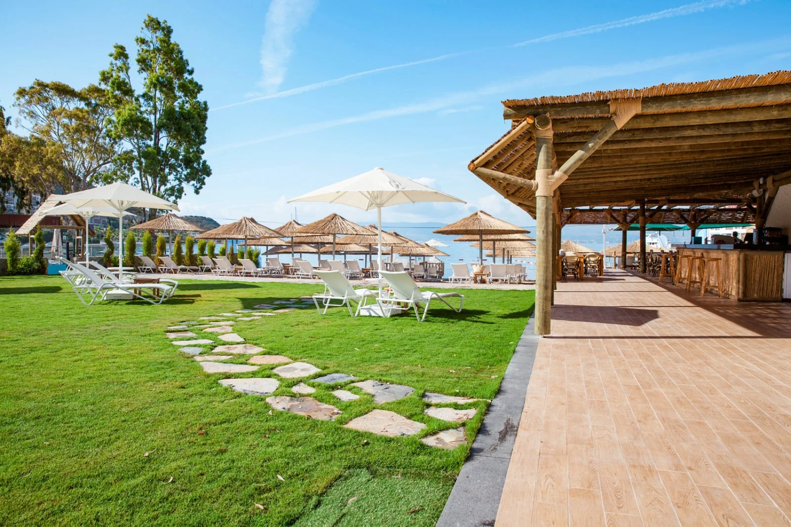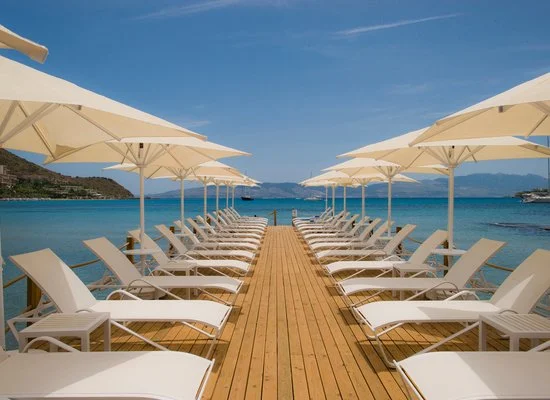 La spiaggia attrezzata di Akyarlar, di sabbia e ciottoli con fondale che digrada dolcemente, dista circa 350 m ed è raggiungibile con una passeggiata. A disposizione un pontile attrezzato con lettini e ombrelloni. Dispone di 3 piscine di cui una per bambini, e una relax con idromassaggio e getti d’acqua, dedicata ai maggiori di 18 anni. Utilizzo gratuito di lettini, ombrelloni e teli mare sia in piscina sia in spiaggia.