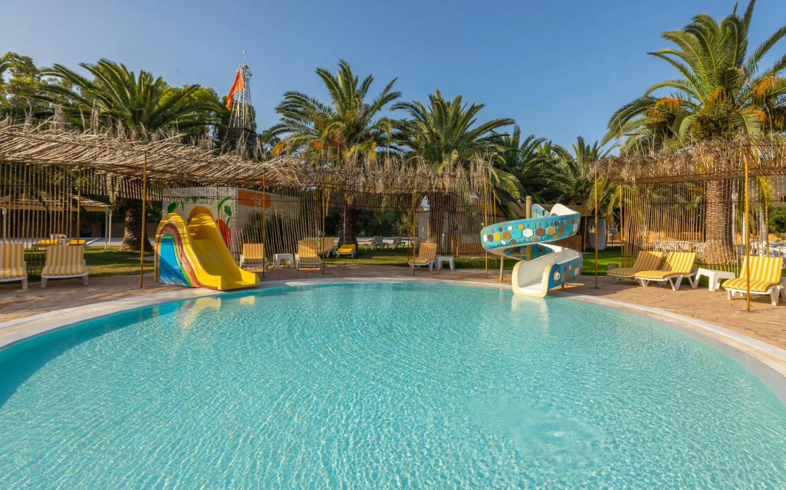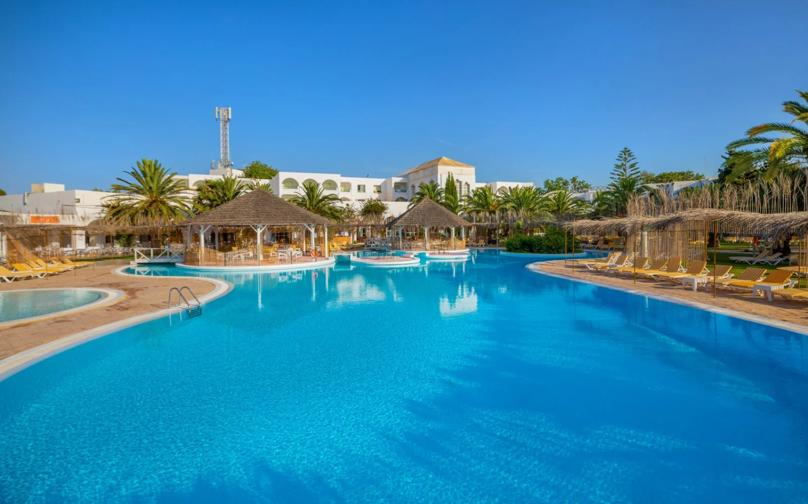 3 piscine esterne, di 1 una con scivoli ed una per bambini, con ombrelloni, lettini a disposizione e teli mare a pagamento e 1 piscina interna. Connessione Wi-Fi gratuita anche nelle aree comuni, area giochi per bambini, anfiteatro, miniclub internazionale (4-12 anni). A pagamento, negozi, servizio medico (esterno), lavanderia, biliardo, parrucchiere, centro SPA con massaggi, hammam e sauna. Un team di animazione internazionale organizza attività sportive diurne e di intrattenimento serale più volte a settimana.