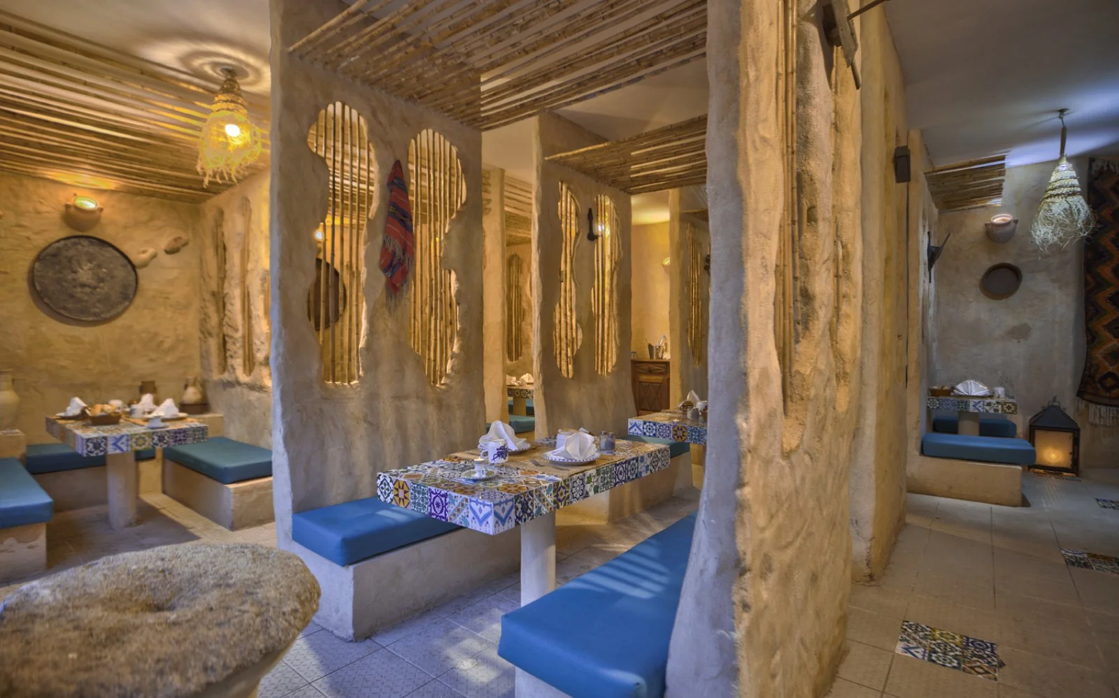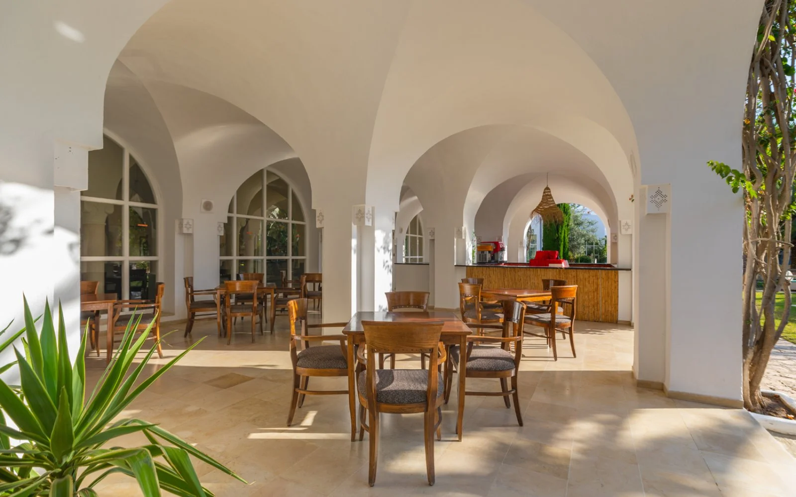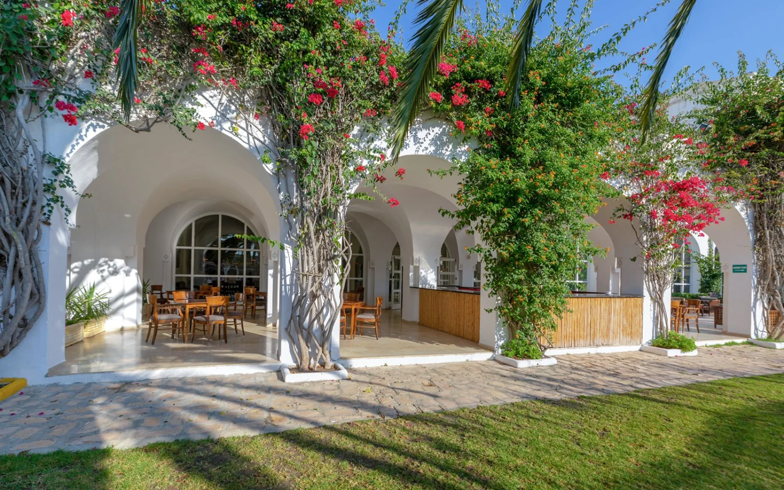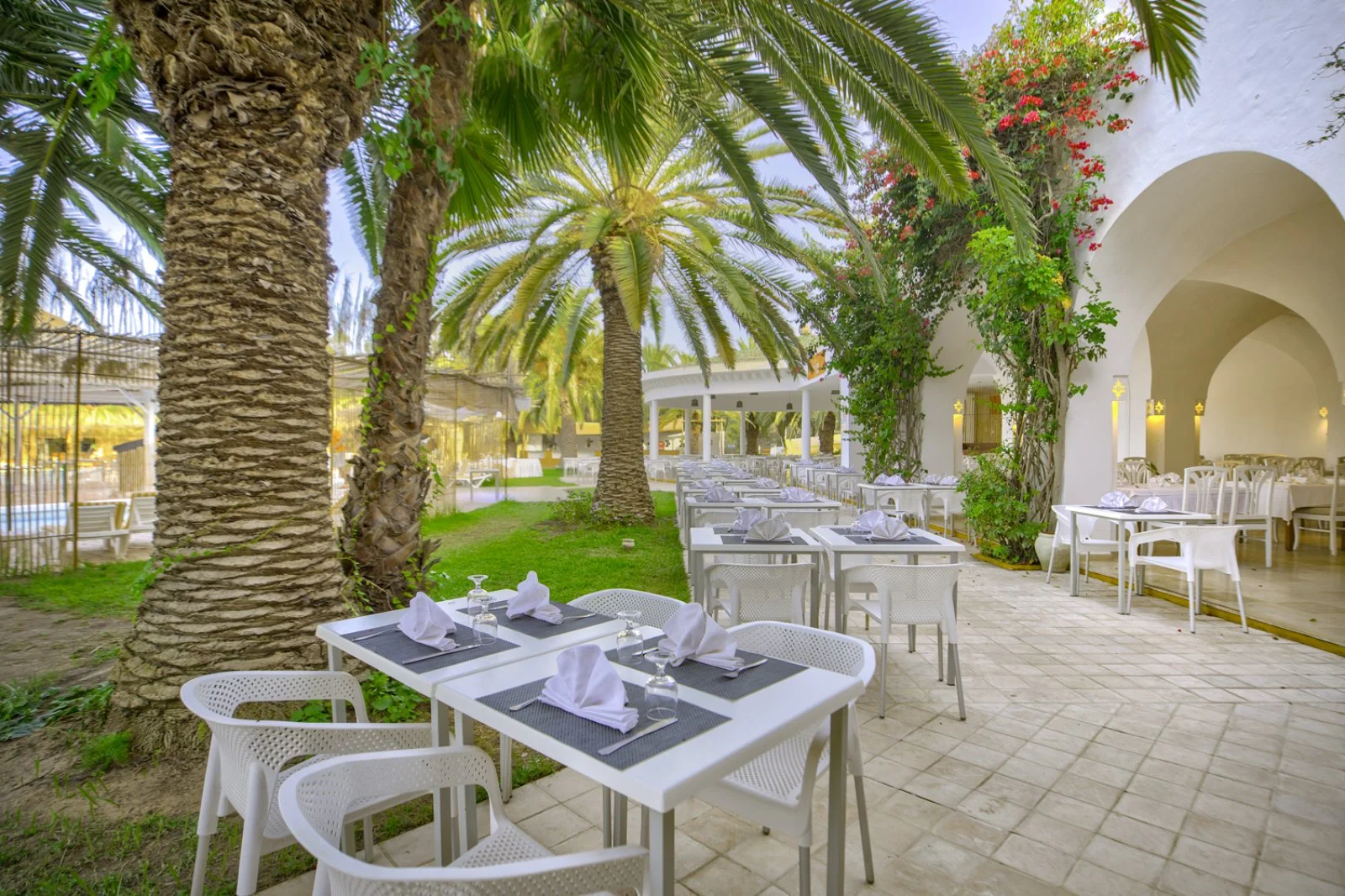2 ristoranti, di cui 1 principale con servizio a buffet e 1 a pagamento à la carte con specialità tunisine e 5 bar, di cui 1 bar principale, 1 bar sulla piscina e 1 sulla spiaggia (apero per la stagione estiva, in quest’ultimo è possibile consumare solo soft drinks), 1 caffé moresco e 1 bar a pagamento (Disco Bar).