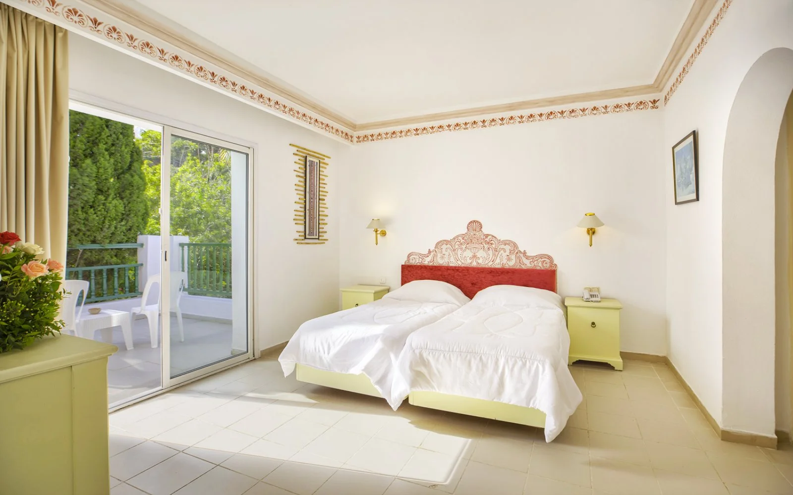 214 camere (25 m², max 4 adulti) in un blocco centrale, con servizi privati, aria condizionata (15/6-15/9), TV satellitare con alcuni canali italiani, asciugacapelli, minifrigo, connessione Wi-Fi gratuita, telefono, balcone o terrazza. A pagamento, cassetta di sicurezza e minibar. Disponibili con supplemento camere con vista piscina e bungalow (22 m², max 3 adulti) dislocati nel giardino della struttura.