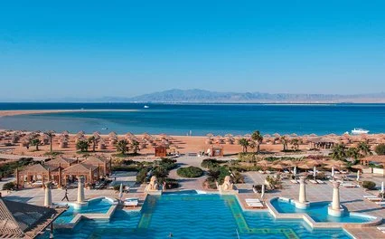 Sorge direttamente sulla spiaggia e dista 45 km dall’aeroporto di Hurghada e 200 km da quello di Marsa Alam. L’hotel si trova direttamente sulla bellissima spiaggia lunga 800 m, con accesso al mare diretto, il reef è presente nelle vicinanze. Dispone di una piscina principale e una per bambini (entrambe riscaldate in inverno); è inoltre presente una terza piscina riservata nella zona delle beach suite.” Ombrelloni, lettini e teli mare disponibili gratuitamente.