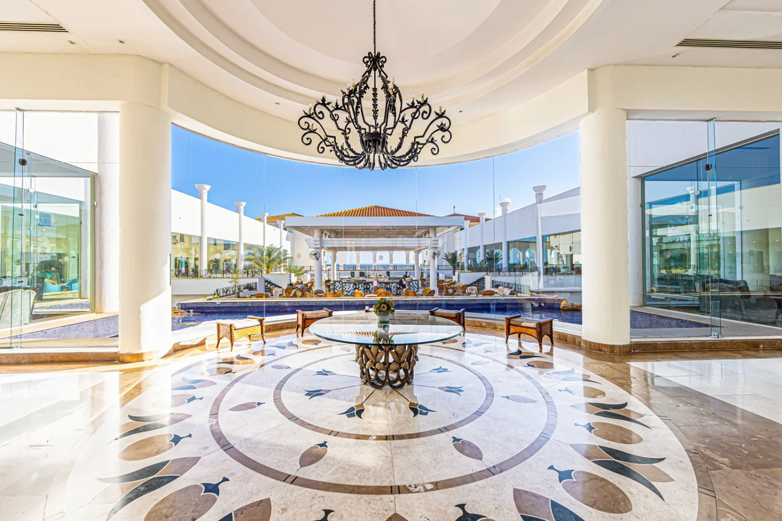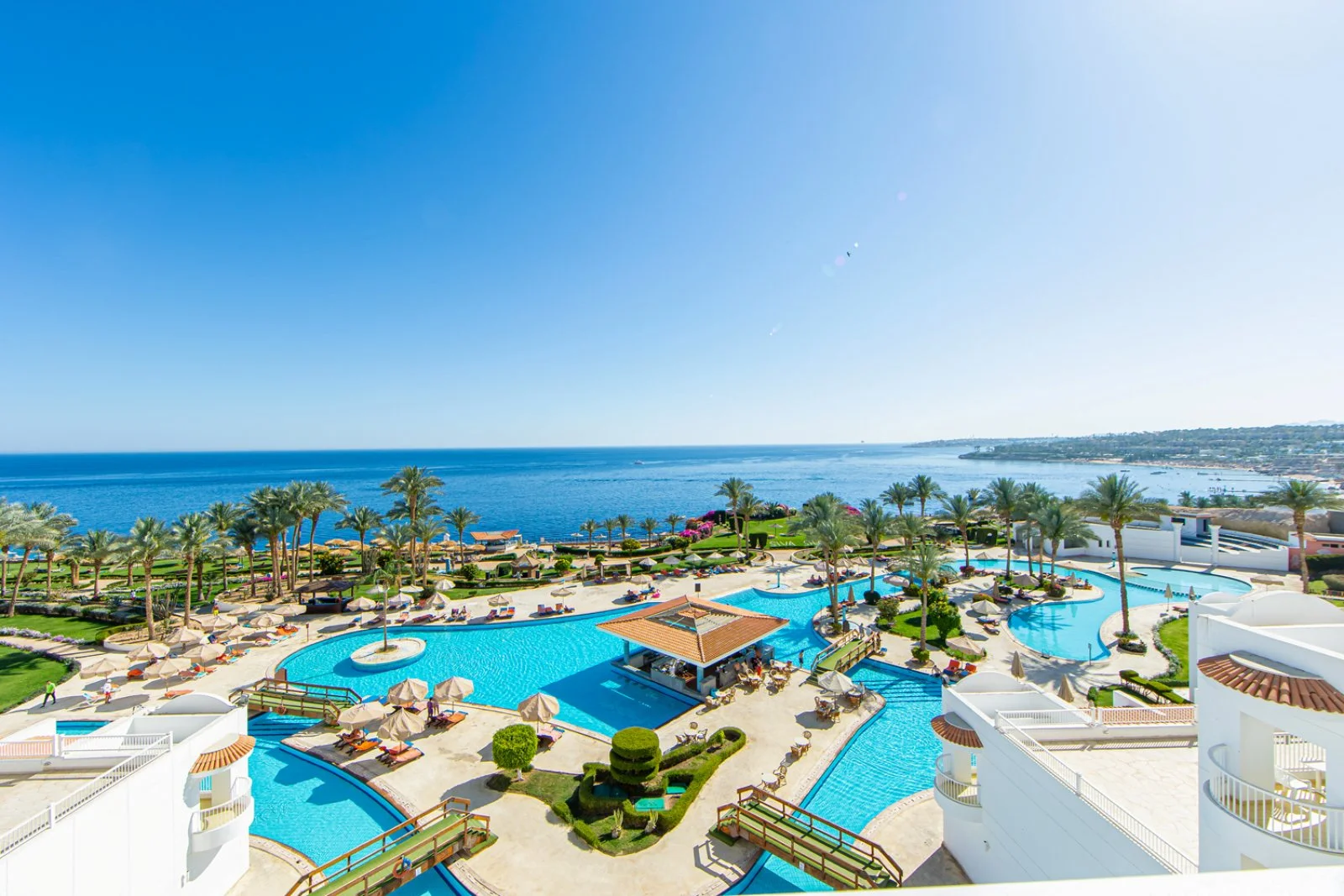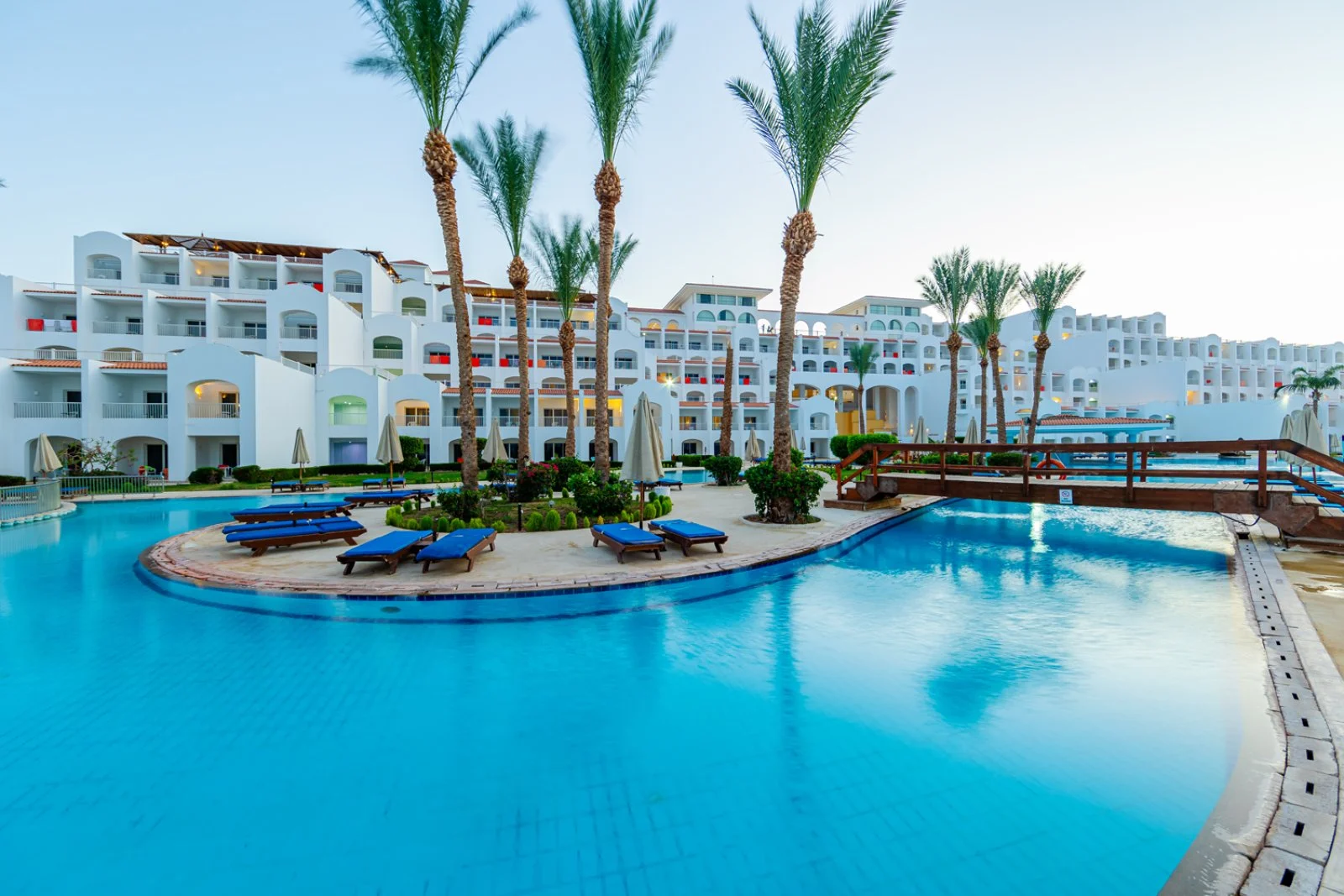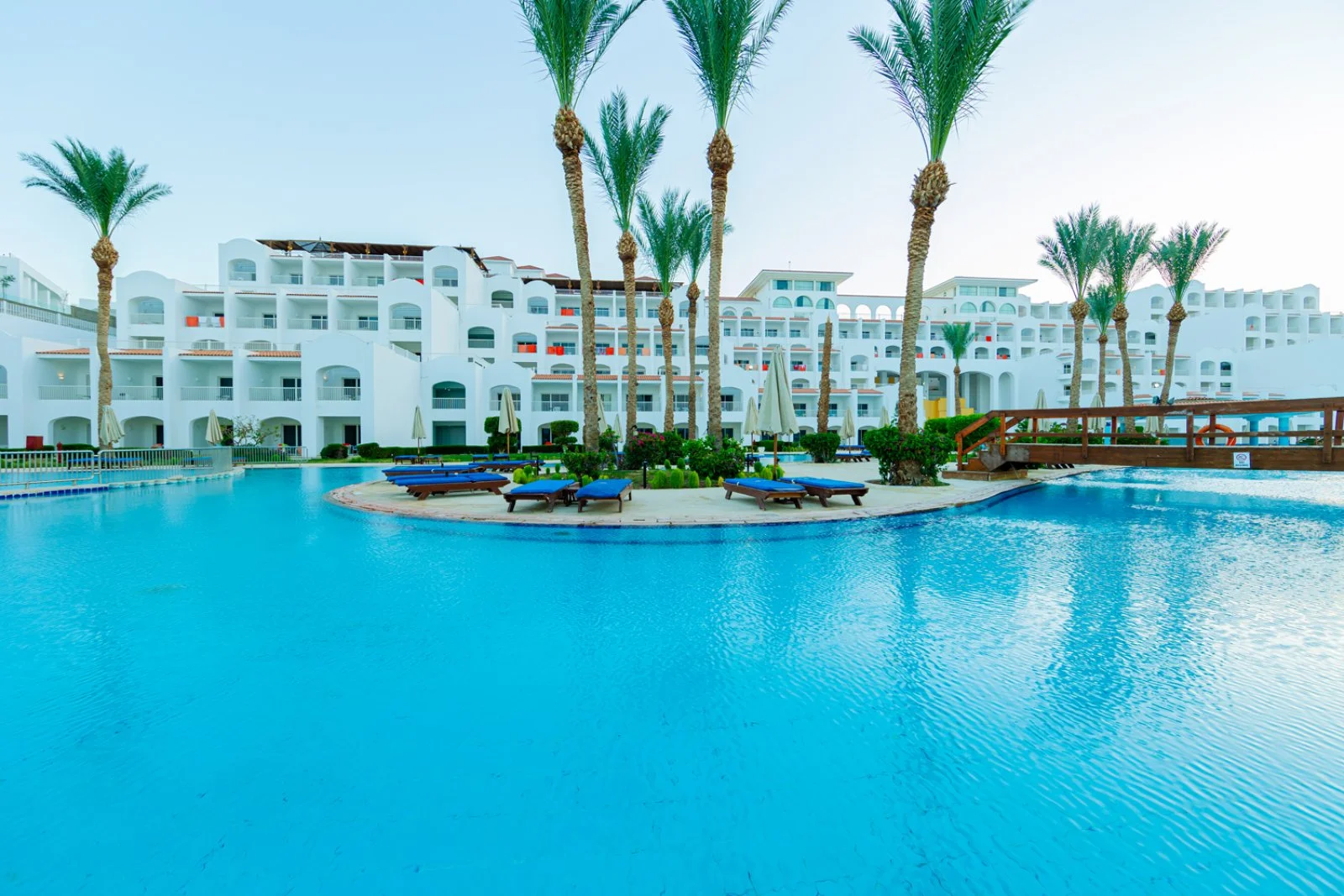 più belle e incontaminate di Sharm, ti aspetta per snorkeling e immersioni da sogno, raggiungibile con un comodo pontile galleggiante. L’hotel, con la sua scenografica reception in vetro che si apre sull’azzurro infinito, si sviluppa in un unico blocco fronte mare, così che la maggior parte delle camere goda di vista laterale o diretta sul mare. Pur non essendo completamente ristrutturato, alcuni interventi recenti lo rendono una scelta semplice e conveniente, ideale per chi cerca un