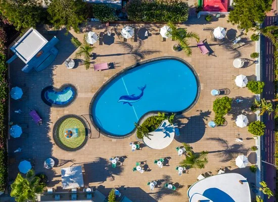3 piscine, di cui 1 per bambini e 1 idromassaggio, con lettini e ombrelloni a disposizione (teli mare disponibili a pagamento), sala tv, area giochi per bambini, parcheggio e connessione wi-fi anche nelle aree comuni. A pagamento, lavanderia, servizio medico (su richiesta), negozio di souvenir, massaggi, sauna, noleggio bici e scooter. L’hotel organizza un programma di intrattenimento musicale serale 2-3 volte a settimana.
