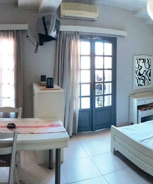 la famosa Ammoudi beach, a soli 10 minuti a piedi. Eden suggerisce questa soluzione ad una clientela giovane e indipendente in cerca di un bel mare e capace di apprezzare la vivace vita notturna che mescola piacevolmente turisti e locali.