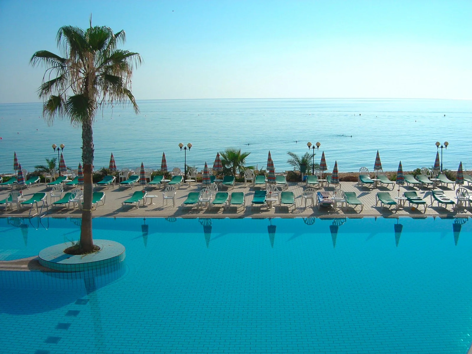 Proprio davanti alla bella spiaggia di sabbia. Dispone di 4 piscine di cui una per bambini, una coperta e una riservata ai soli adulti. Uso gratuito di lettini, ombrelloni e teli mare solo in piscina.