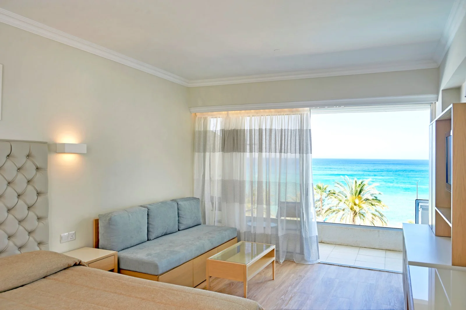 282, tutte dotate di servizi privati, asciugacapelli, accappatoio e ciabattine, aria condizionata con controllo individuale, TV satellitare, accesso internet Wi-Fi, cassetta di sicurezza, bollitore per tè e caffè, balcone. Le doppie inland view hanno occupazione massima 2 adulti, mentre le doppie vista mare laterale possono ospitare 2 adulti + 1 bambino. Per chi desidera il miglior panorama, disponibili anche le superior fronte mare che possono ospitare fino a un massimo di 3 adulti e le junior suite panoramic con vista mare, ampie e luminose con una bella vista, ideali anche per famiglie di 2 adulti e 2 bambini.