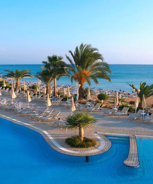 A Protaras, il cui centro è raggiungibile in pochi minuti a piedi, dista circa 65 km dall’aeroporto di Larnaca. La struttura è costituita da un unico edificio di 7 piani dall’architettura contemporanea, affacciato sulle piscine e su colorate aiuole. Ogni ambiente è curato e accogliente grazie ad arredi moderni e all’utilizzo di tonalità tenui.
