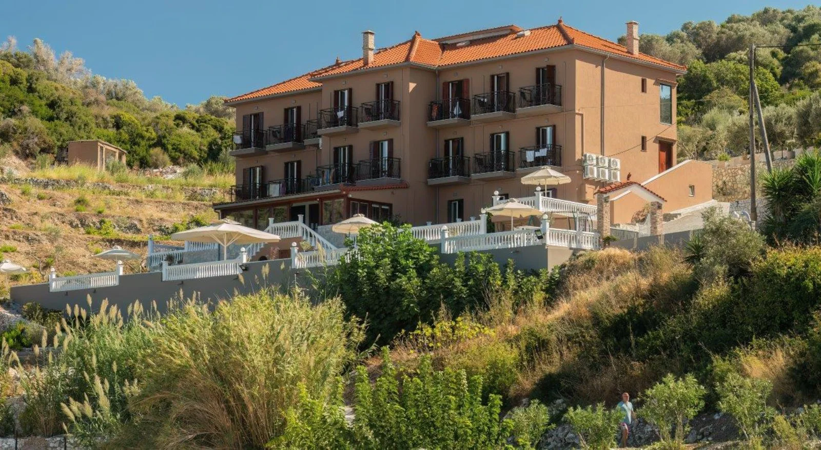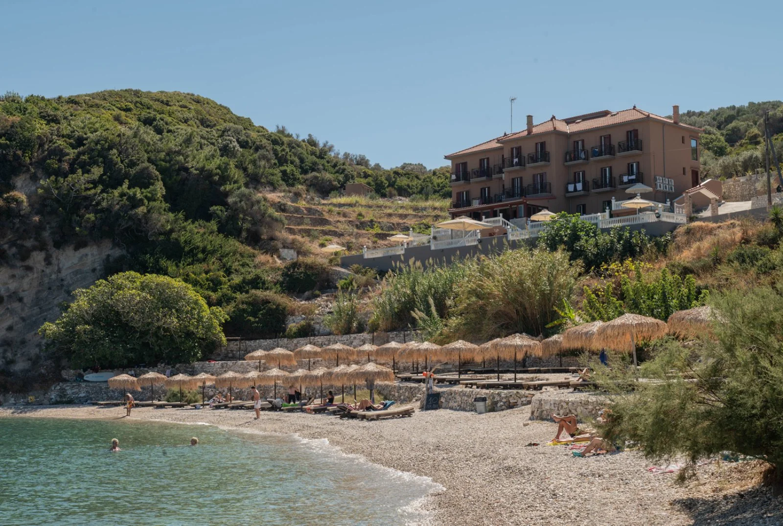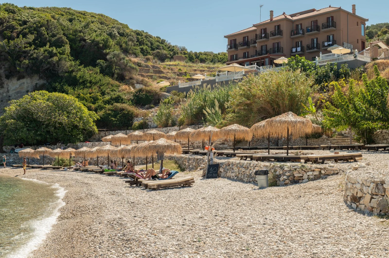 punto di forza è senza dubbio la spiaggia sottostante di ciottoli chiari, ideale per svegliarsi con il suono delle onde. Anche la vicinanza al centro, raggiungibile con una breve passeggiata, è molto apprezzata da tutti coloro che desiderano una sistemazione comoda a tutto e contemporaneamente in posizione appartata, per rilassarsi totalmente.