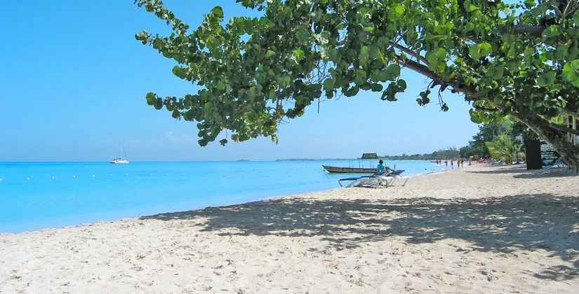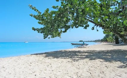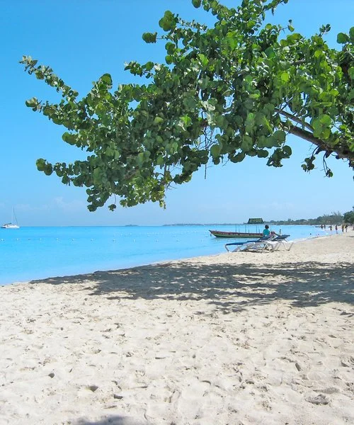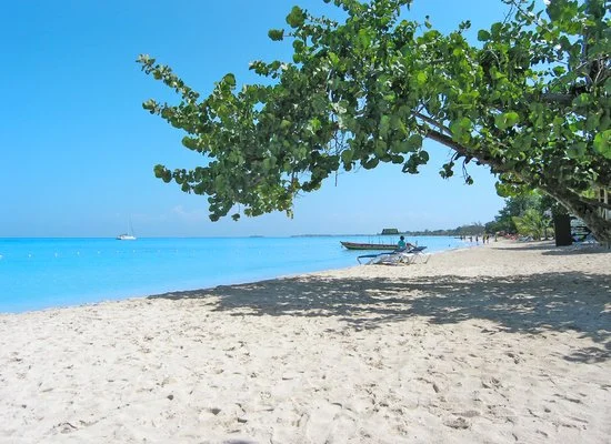 di fine sabbia bianca, la famosa Seven Mile Beach (a 50 m), con beach club convenzionato, il Bourbon Beach, e lettini a disposizione (teli mare non disponibili). Zone d’ombra garantite da un pittoresco albero in riva al mare.