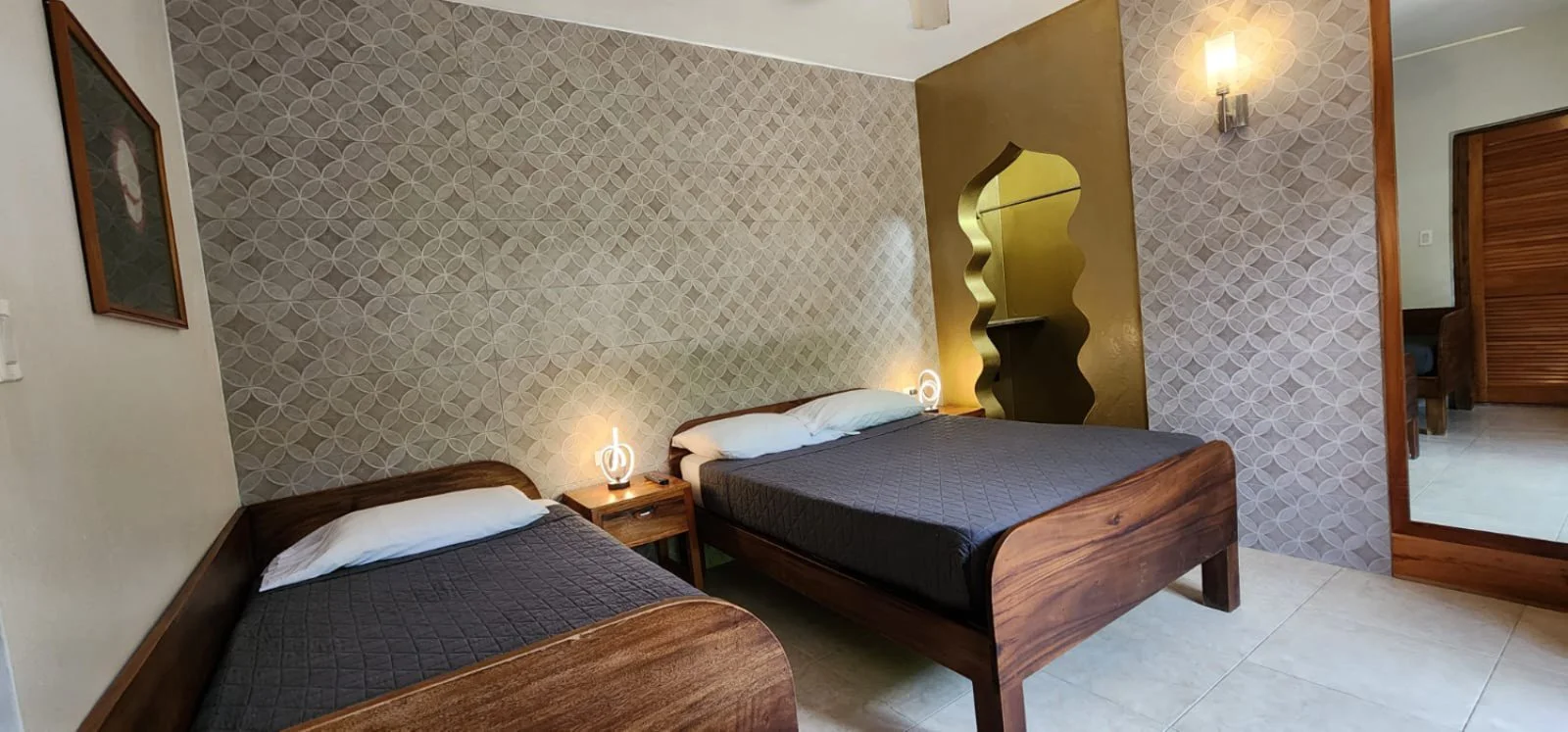 14 camere divise tra standard e deluxe su 2 blocchi di un solo piano, tutte con veranda, servizi privati, aria condizionata, ventilatore a soffitto, tv e cassetta di sicurezza.