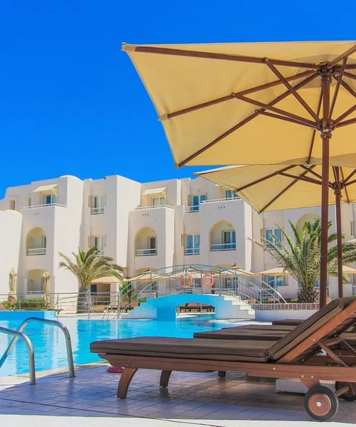 L'hotel si trova a circa 6 km dal villaggio di Midoun, 11 km da Houmt Souk e circa 20 km dall’aeroporto di Djerba. Si compone di un edificio centrale e diversi bungalow immersi nel verde.