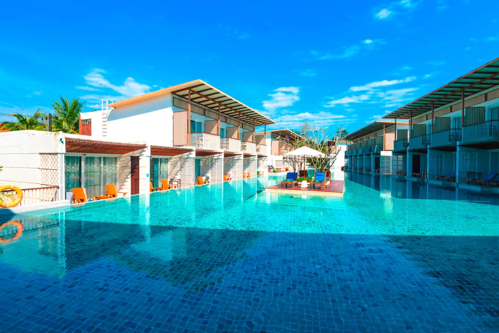 181 camere dislocate in 2 ali della struttura divise in un’area spiaggia e un’area piscina, quest’ultima in seconda linea separata da una stradina, tutte con servizi privati, aria condizionata, asciugacapelli, telefono, TV satellitare, bollitore per tè e caffè, minifrigo, cassetta di sicurezza, connessione Wi-Fi gratuita e terrazza o balcone. Nell’ala piscina si trovano le camere deluxe vista piscina (42 m2) situate ai piani superiori. Disponibili con supplemento, camere deluxe con accesso piscina (42 m2). Nell’ala spiaggia camere deluxe giardino (42 m2) situate al 2º e 3º piano, e deluxe triple (45 m2, max 4 adulti) situate a piano terra con terrazza attrezzata con lettini e ombrellone.