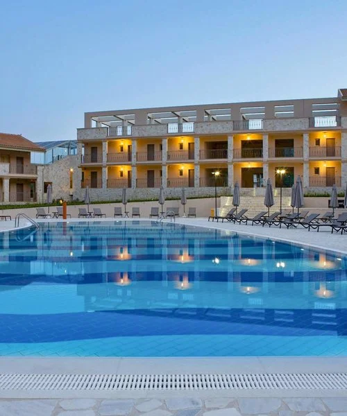 In località Katelios, a circa 7 km dal centro di Skala e 27 km dall’aeroporto. Fermata bus di linea a 200 m. La struttura si compone di 3 edifici a 3 piani dall’architettura tradizionale, decorati con tonalità calde e impreziositi da elementi in pietra naturale. Gli edifici si sviluppano armoniosamente attorno alla piscina principale, cuore pulsante del complesso, creando così un ambiente raccolto e accogliente.