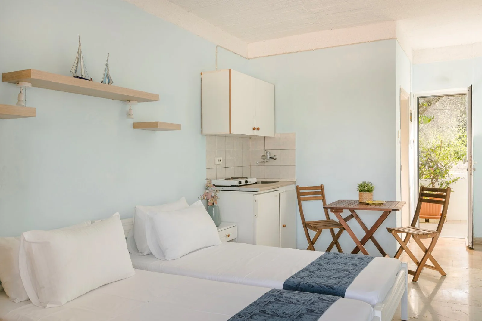 studio semplici e funzionali, ideali come punto d’appoggio per una vacanza indipendente e senza vincoli. Sono situati lungo la strada principale di Lassi che conduce ad Argostoli, costellata di negozi, taverne e tutti i principali servizi, e a soli 500 m dalla spiaggia di Gradakia, piccolina ma con acque cristalline. Eden suggerisce di abbinare al soggiorno il noleggio di un’auto in modo da girovagare per l’isola liberamente, scoprendo il capolouogo, le tante spiagge e anche l’interessante entroterra.