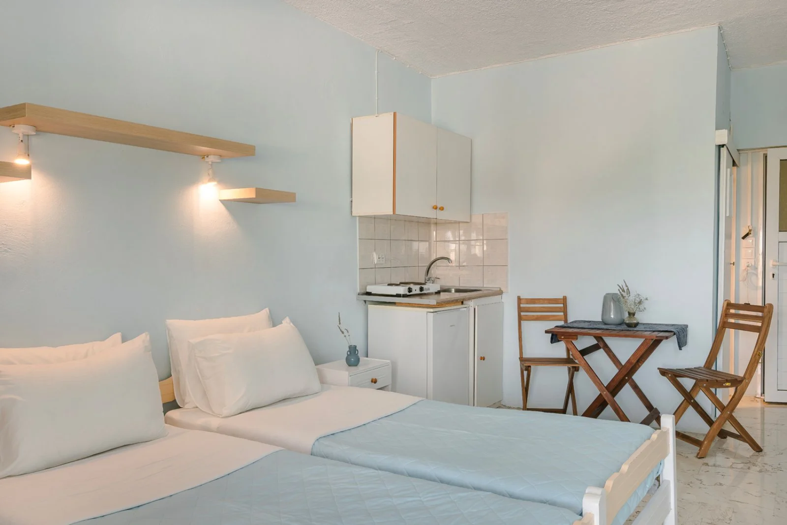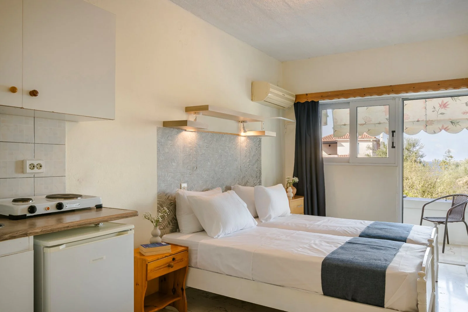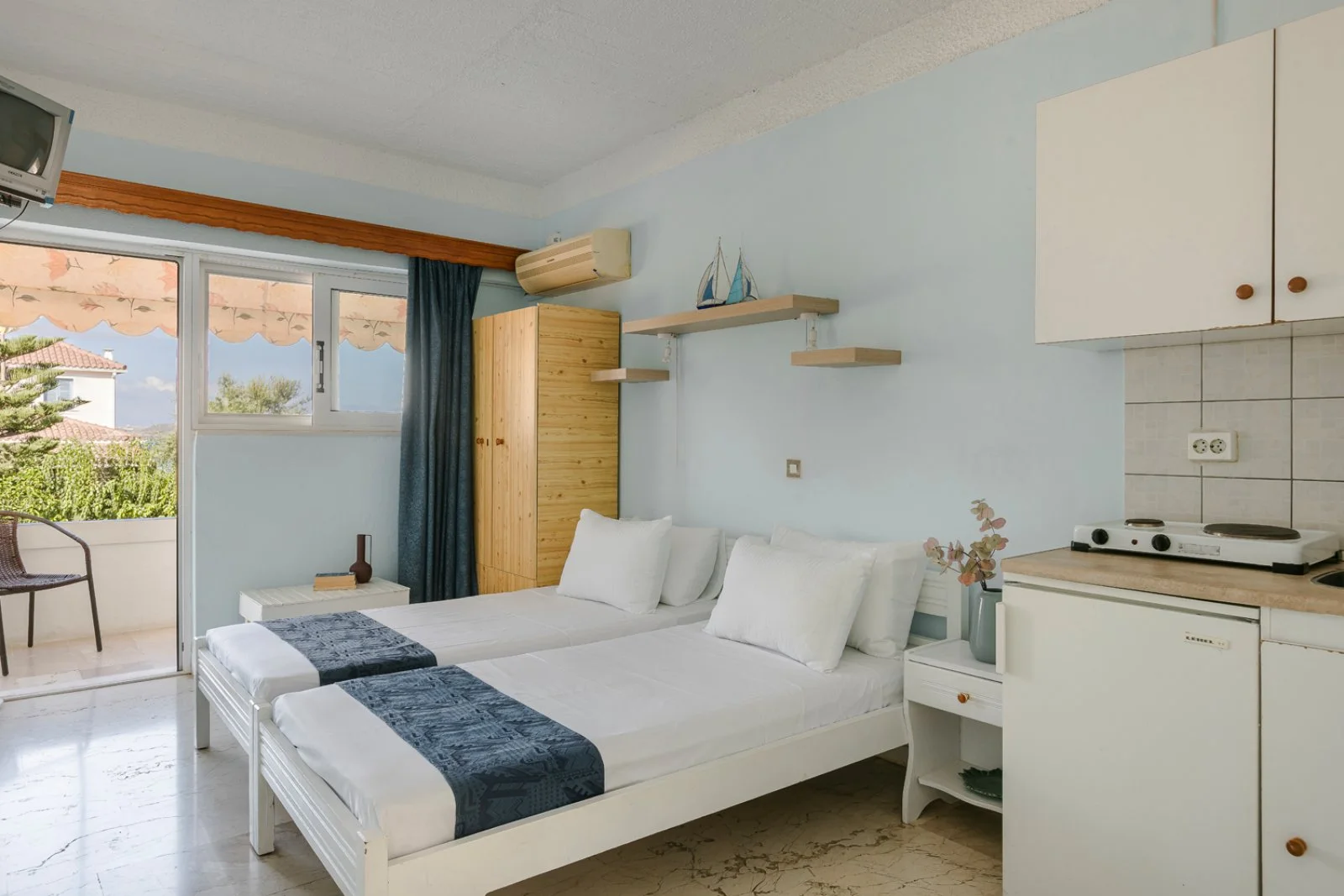 20 studio (25 m2) disposti in 1 edificio con servizi privati, asciugacapelli, tv, connessione Wi-Fi, angolo cottura con minifrigo e terrazza o balcone. A pagamento, aria condizionata.