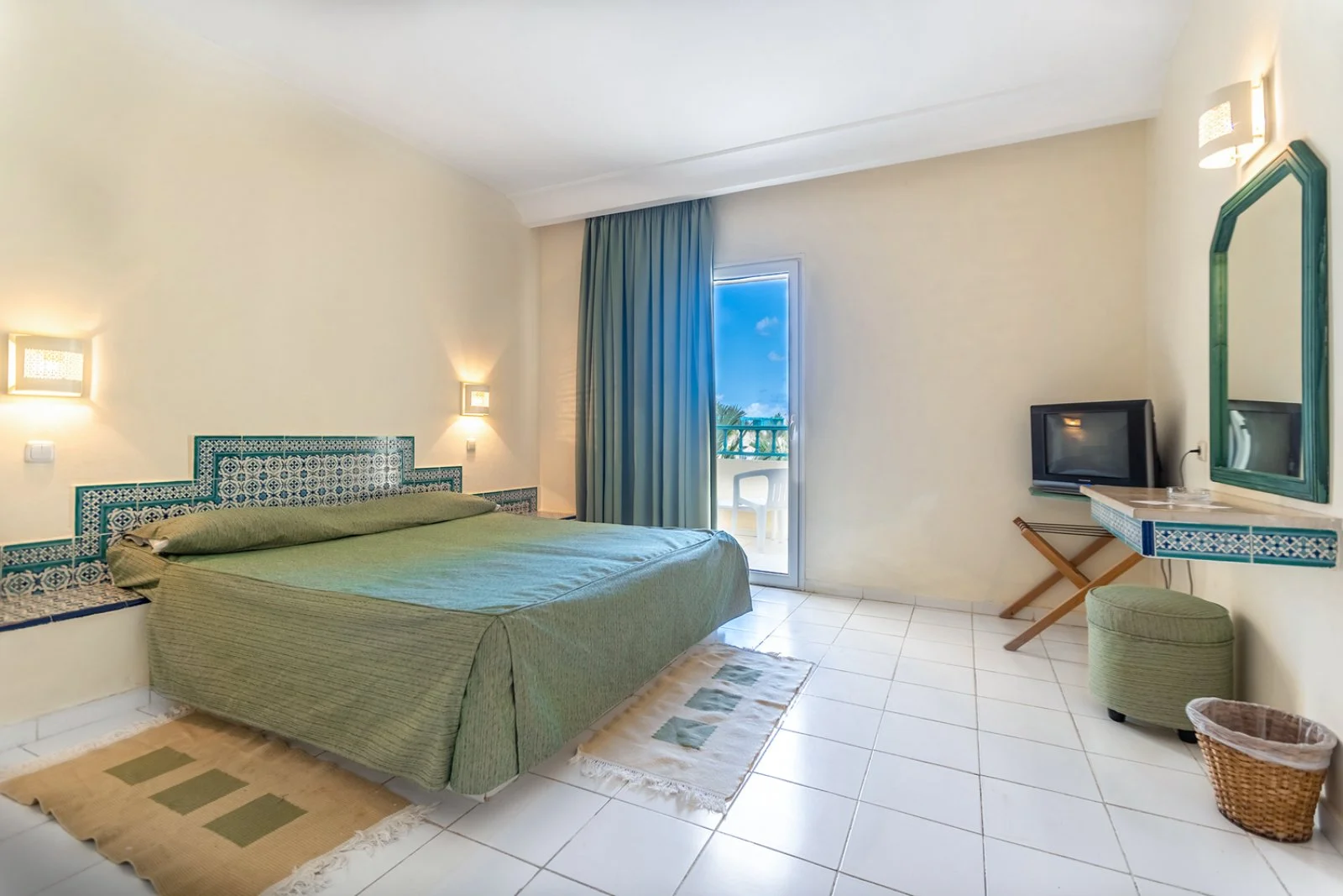 159 camere (18 m² max 3 adulti + 1 bambino), su 2 piani, con servizi privati, asciugacapelli, aria condizionata, TV satellitare con alcuni canali italiani, telefono, terrazzo o balcone, connessione Wi-Fi gratuita, cassetta di sicurezza. Con supplemento, camere family (24m²), più ampie con due ambienti aperti. A pagamento, minibar.