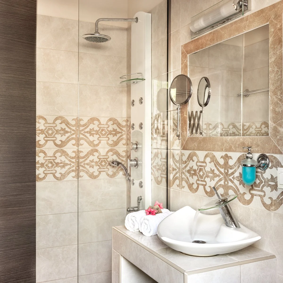 42 camere (17 m2) disposte in 3 edifici di 3 piani con servizi privati, asciugacapelli, aria condizionata, telefono con linea diretta, TV satellitare, connessione Wi-Fi, minifrigo, cassetta di sicurezza e terrazza o balcone. Sono disponibili, con supplemento, camere vista mare, superior e family (22-25 m2).