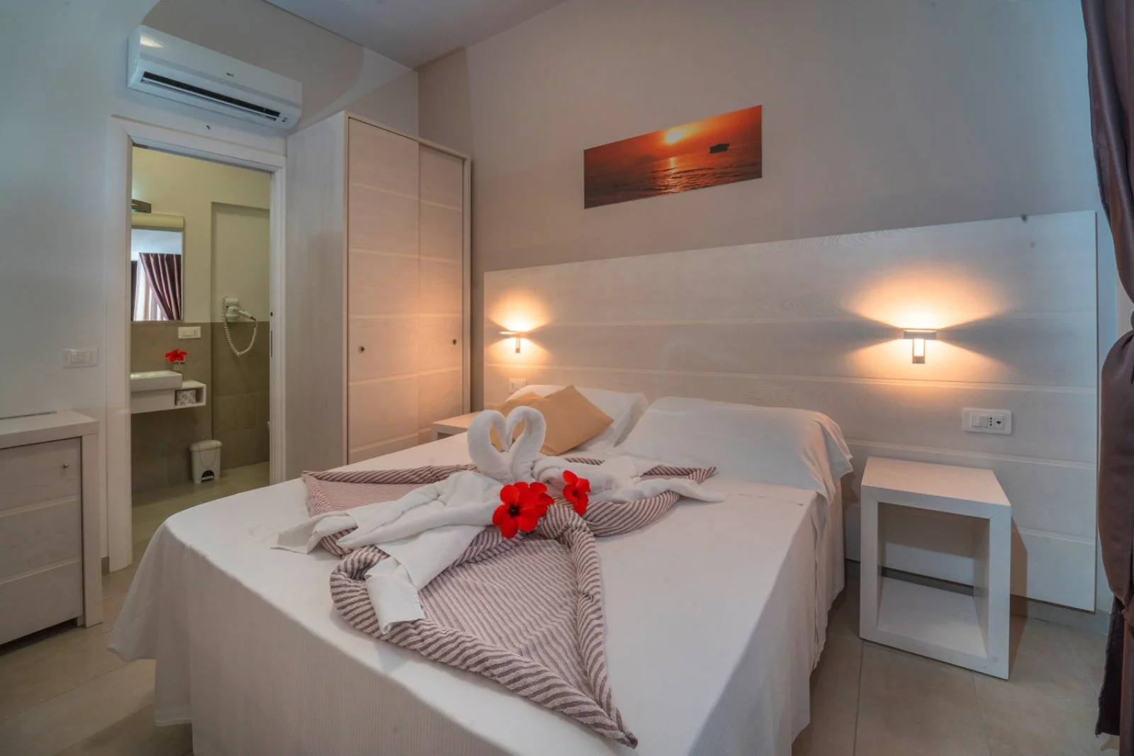 89, dotate di servizi privati con doccia, asciugacapelli, aria condizionata, TV LCD, minifrigo, telefono, Wi-Fi, cassaforte e terrazzino o piccolo patio. Possono essere doppie, triple, quadruple e quintuple. Le camere standard sono denominate Ercole mentre le Scilla si distinguono per l'arredamento moderno ed il maggior comfort. Le Scilla family sono invece bilocali con un bagno ed ospitano fino a 5 persone. A pagamento: minibar su richiesta.