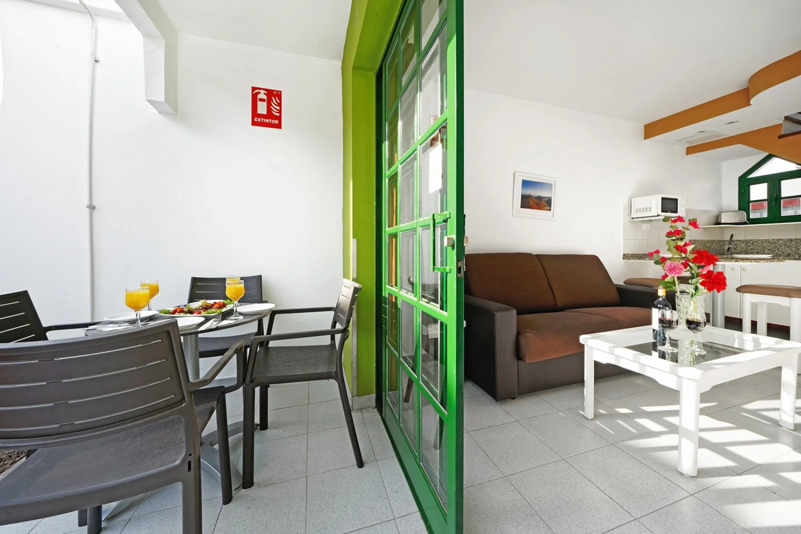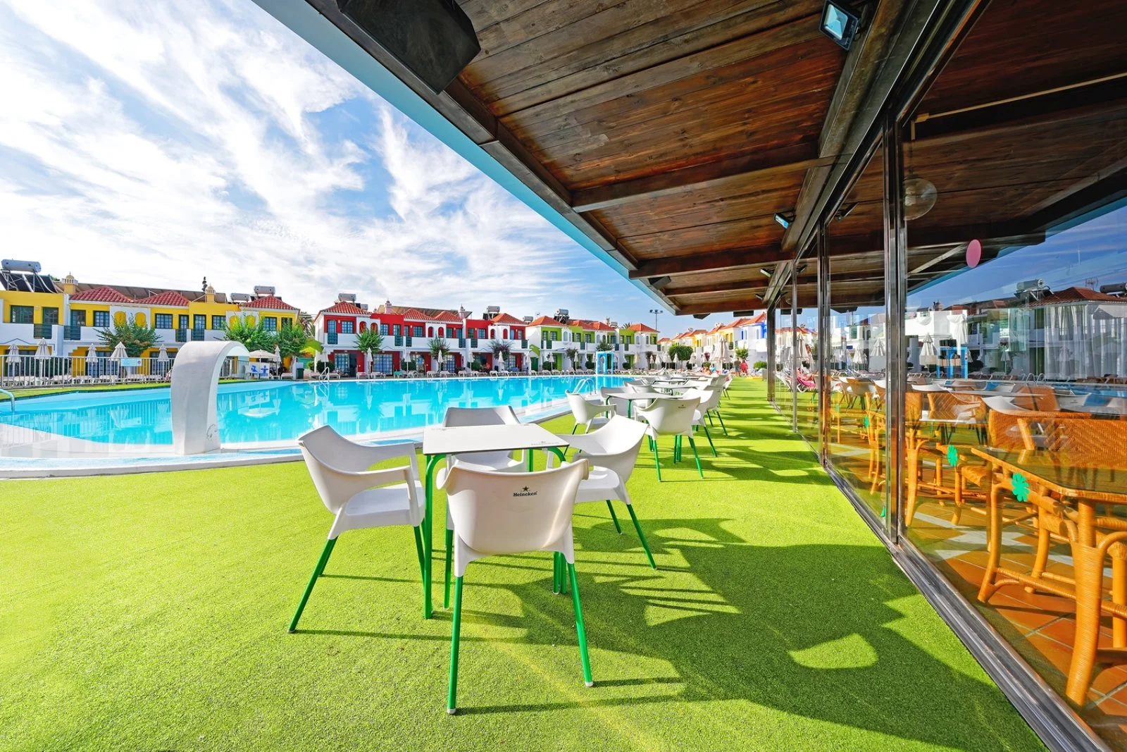 210 appartamenti su un piano solo, suddivisi tra bilocali (35 m2/max 4 adulti) e trilocali (45 m2/max 5 adulti), tutti con servizi privati, terrazza o balcone, asciugacapelli, aria condizionata, Tv satellitare con alcuni canali italiani, angolo cottura attrezzato, minifrigo e connessione wi-fi gratuita. A pagamento, cassetta di sicurezza in reception e telefono con linea esterna diretta. Cambio asciugamani ogni 3 giorni, biancheria ogni 5.