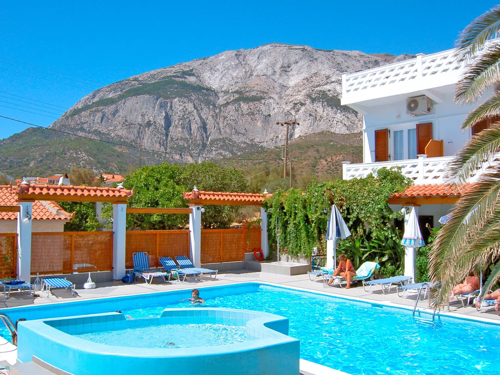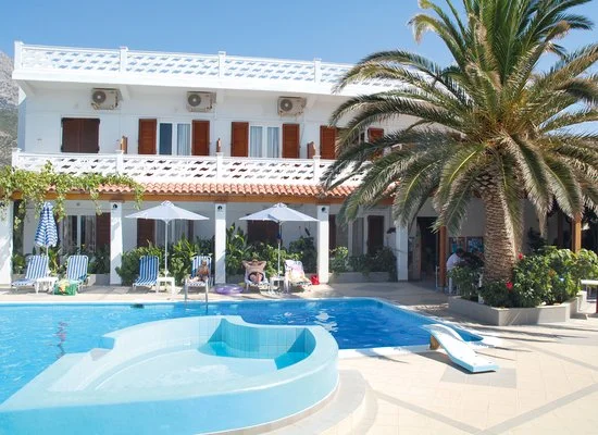 Si tratta di un hotel accogliente, rilassante e grazioso, situato nella parte sud-ovest dell’isola, alle pendici dell’imponente Monte Kerkis e