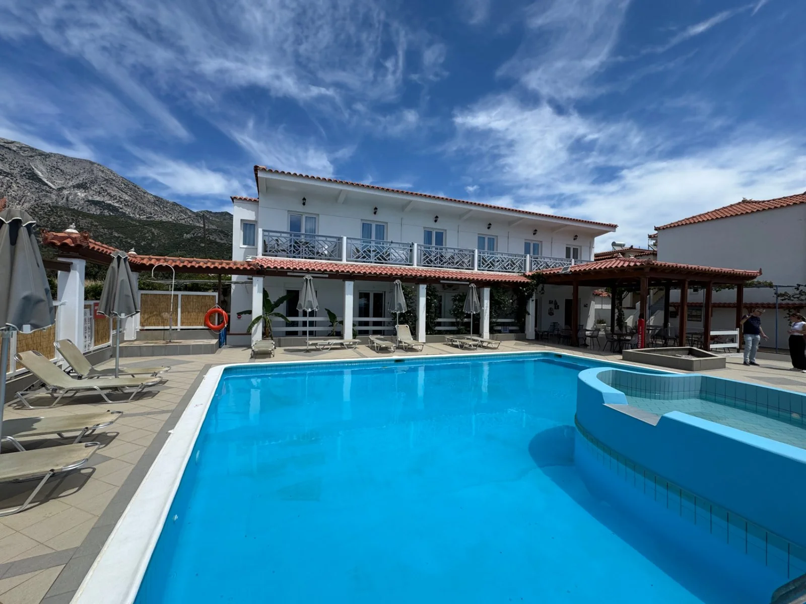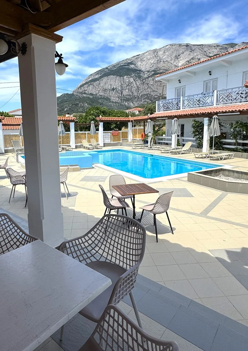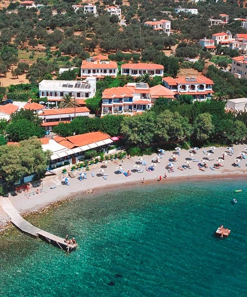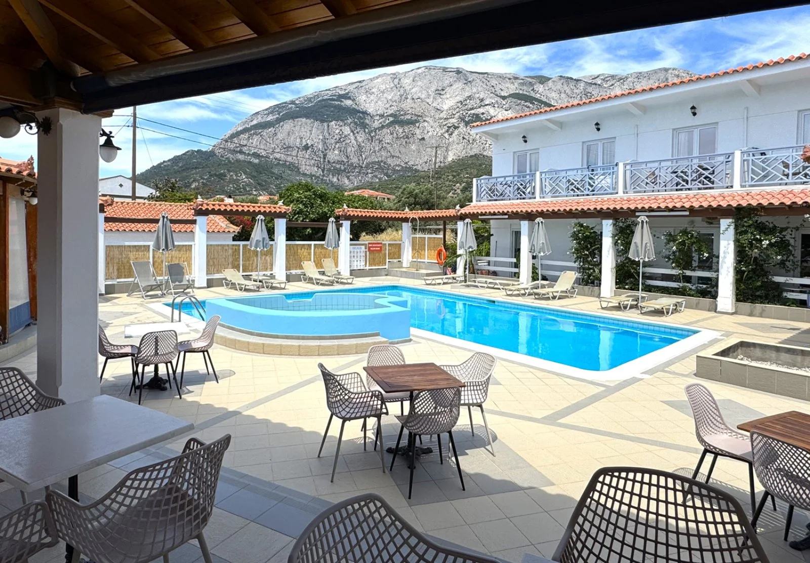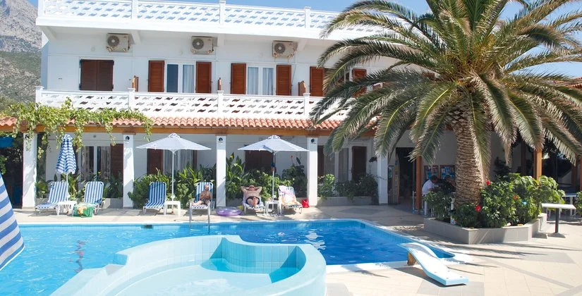 Si tratta di un hotel accogliente, rilassante e grazioso, situato nella parte sud-ovest dell’isola, alle pendici dell’imponente Monte Kerkis e sulla spiaggia di Votsalakia, una distesa di piccolissimi ciottoli e sabbia lunga più di 3 km e lambita da un mare limpido e cristallino.