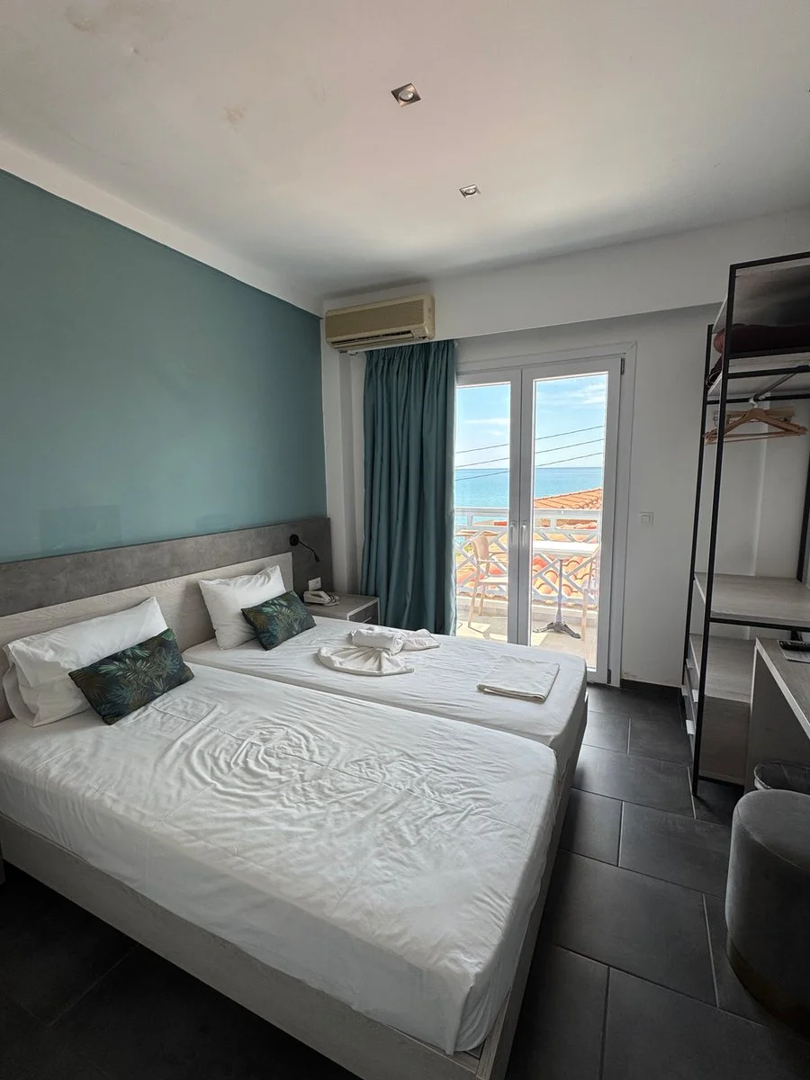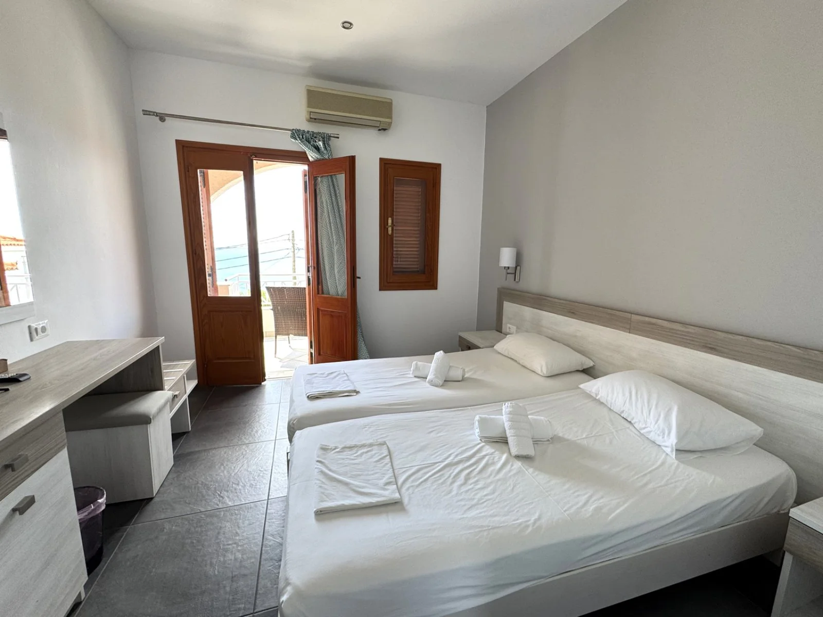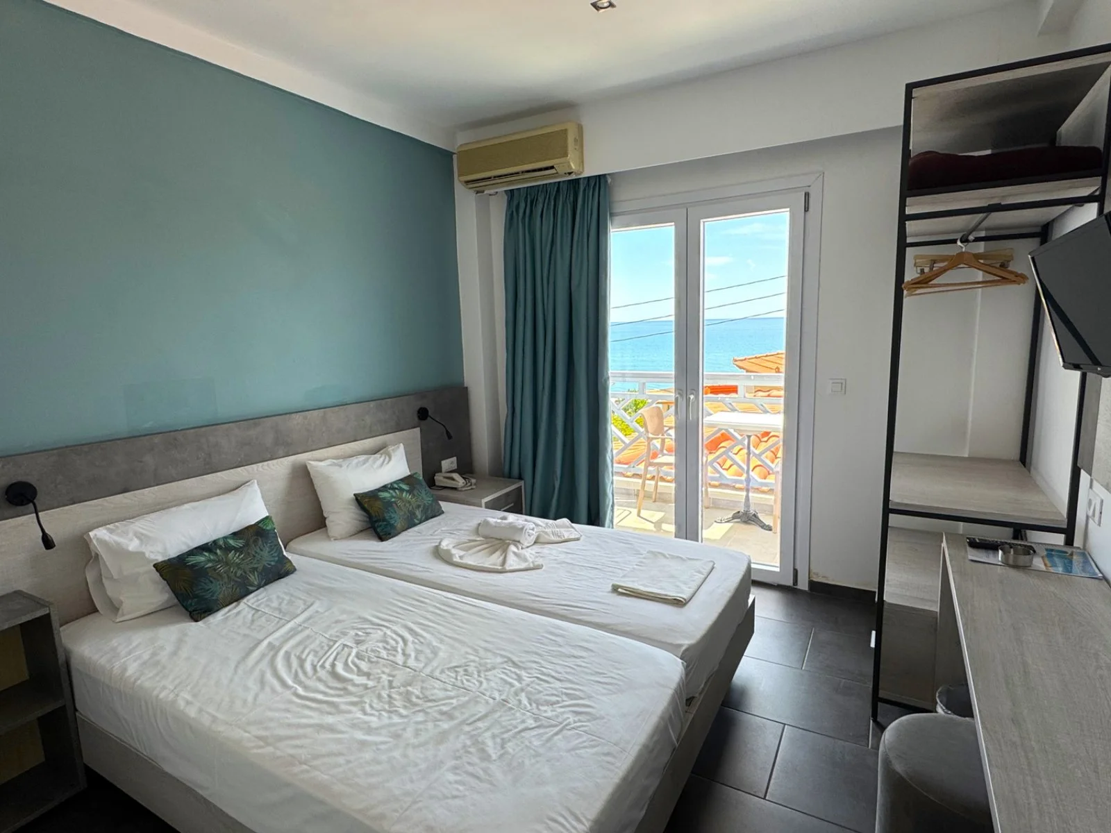 Si tratta di un hotel accogliente, rilassante e grazioso, situato nella parte sud-ovest dell’isola, alle pendici dell’imponente Monte Kerkis e sulla spiaggia di Votsalakia, una distesa di piccolissimi ciottoli e sabbia lunga più di 3 km e lambita da un mare limpido e cristallino.