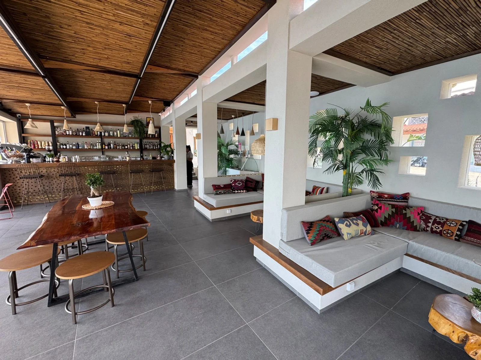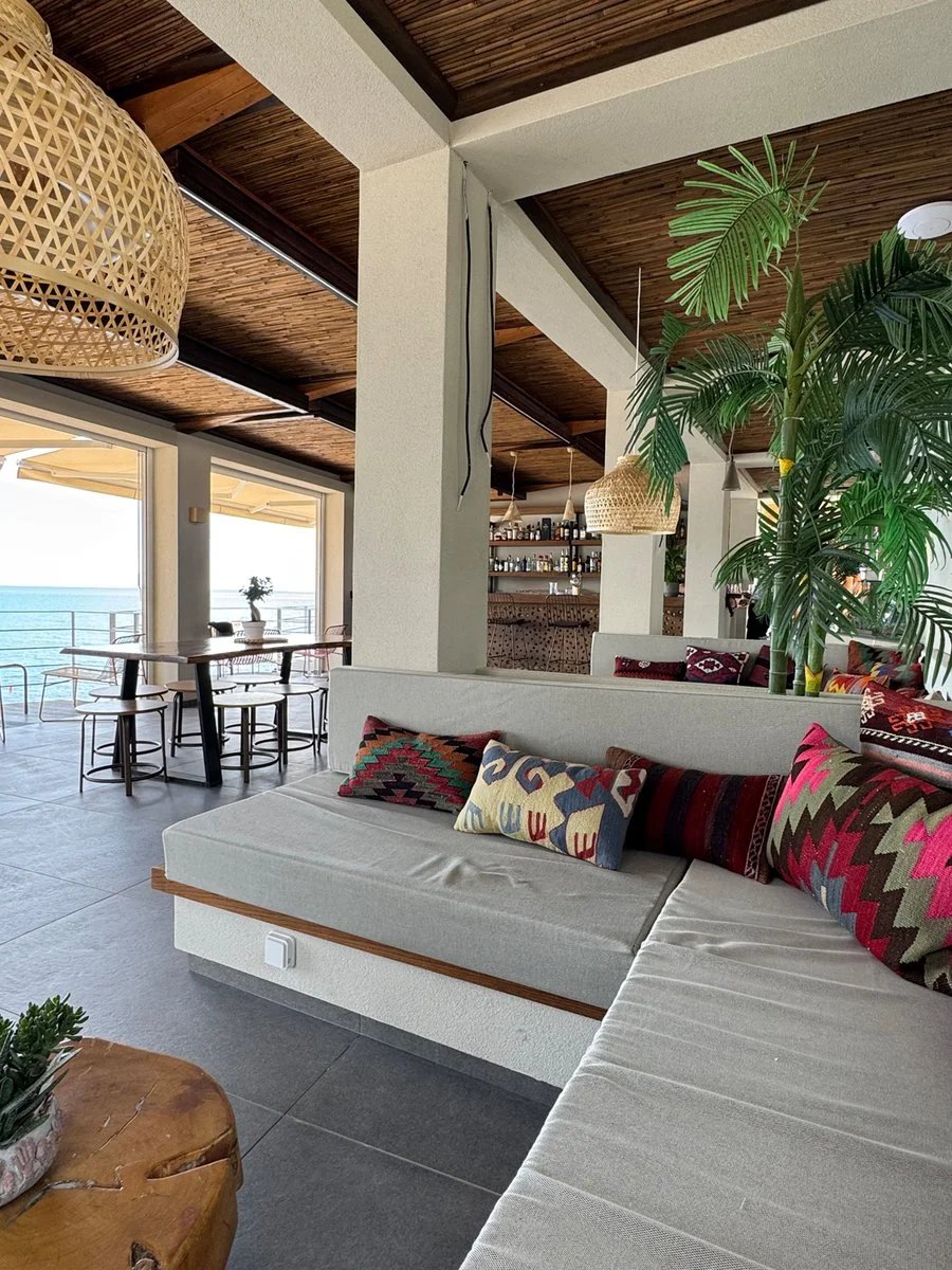 una terrazza a bordo piscina per la prima colazione e un ristorante sulla spiaggia, a pagamento e sempre sulla spiaggia, un bar.