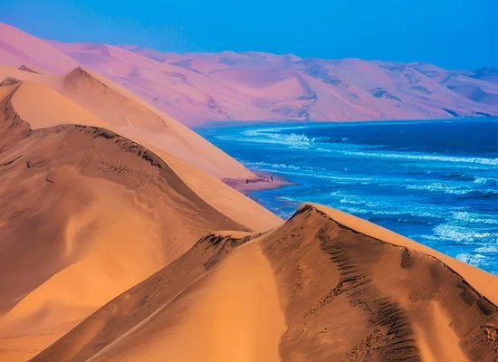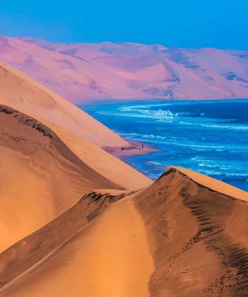 Viaggiare via terra in Namibia, percorrendo strade polverose, è un viaggio dell'anima: drammaticamente bello, talvolta aspro, che sicuramente non potrai dimenticare. Un percorso dove la natura si esprime al massimo e dove farai esperienze ed incontri davvero particolari e unici: il deserto del Namib con le spettacolari dune color albicocca dove potrai passeggiare e gustare un’insolita colazione; un aperitivo esclusivo nella Moon Valley per ammirare uno dei tramonti più indimenticabili; uscita in barca nell’area di Swakopmund per ammirare uccelli, foche e delfini; incontro con la fiera popolazione degli Himba e per finire in bellezza il Parco Etosha, unico nel suo genere e paradiso di rinoceronti, leoni e leopardi.