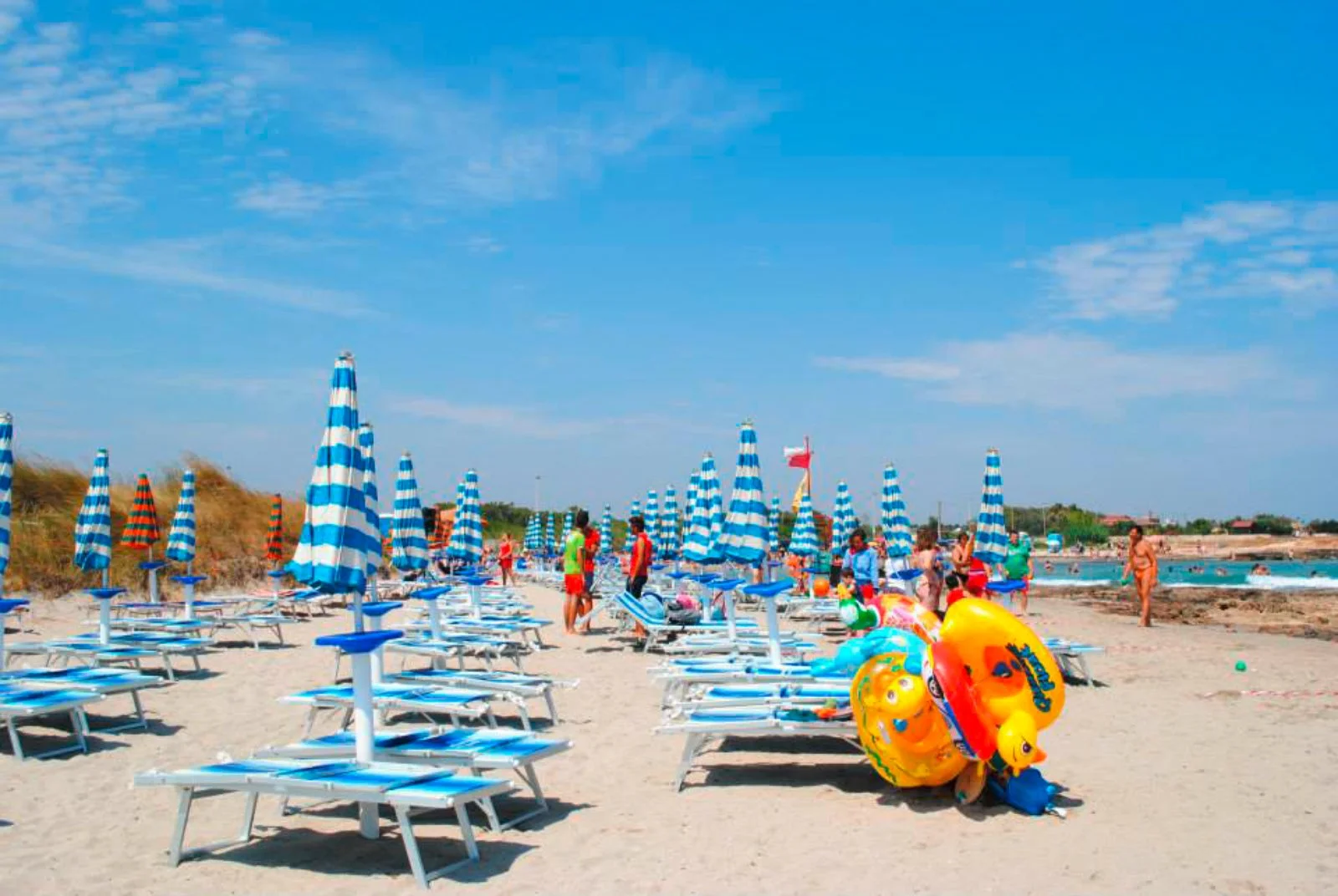 Di sabbia, privata ed attrezzata con 1 ombrellone e 2 lettini per unità abitativa, servizio navetta da e per la spiaggia ad orari prestabiliti.