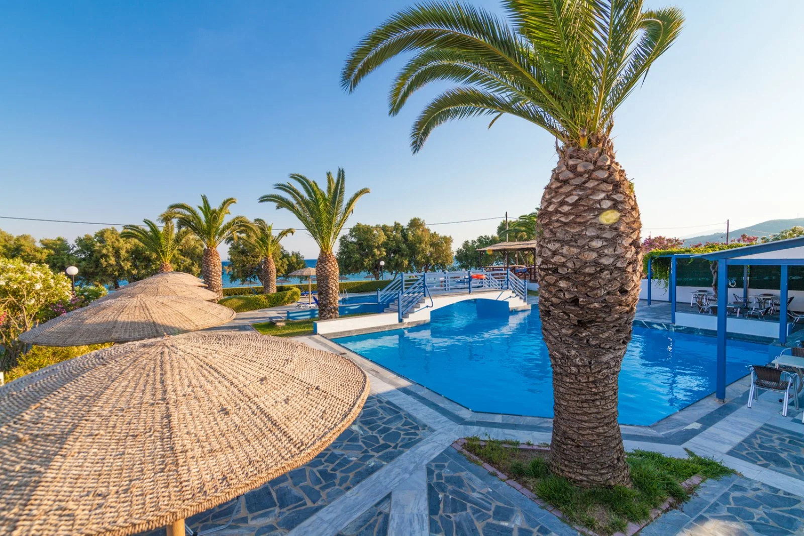 Questo hotel piccolo e molto grazioso è situato direttamente sulla spiaggia di Mikali. La più lunga dell’isola e senz’altro fra le più belle (vanta la Bandiera Blu), è famosa per i ciottoli bianchissimi e per la vista sulla vicinissima Turchia (a 800 metri dal bagnasciuga!). Si rivela