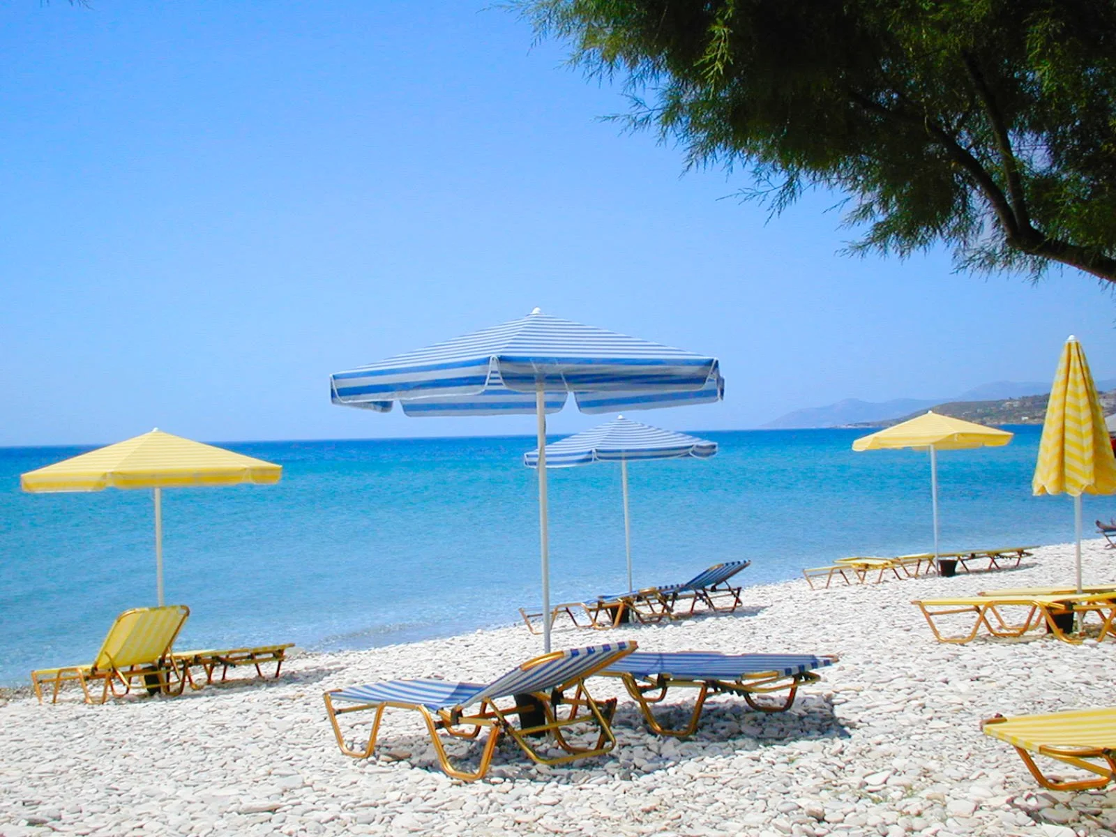 di ciottoli bianchi, attrezzata con ombrelloni e lettini a pagamento (teli mare disponibili in hotel).